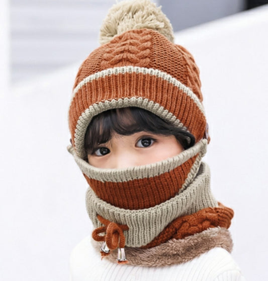 Caciulita Combo 3-in-1 pentru fetite (Caciula+Masca+Esarfa)