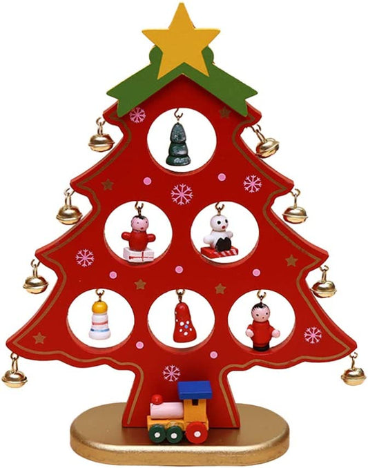 Brad de Craciun din lemn cu ornamente in Miniatura
