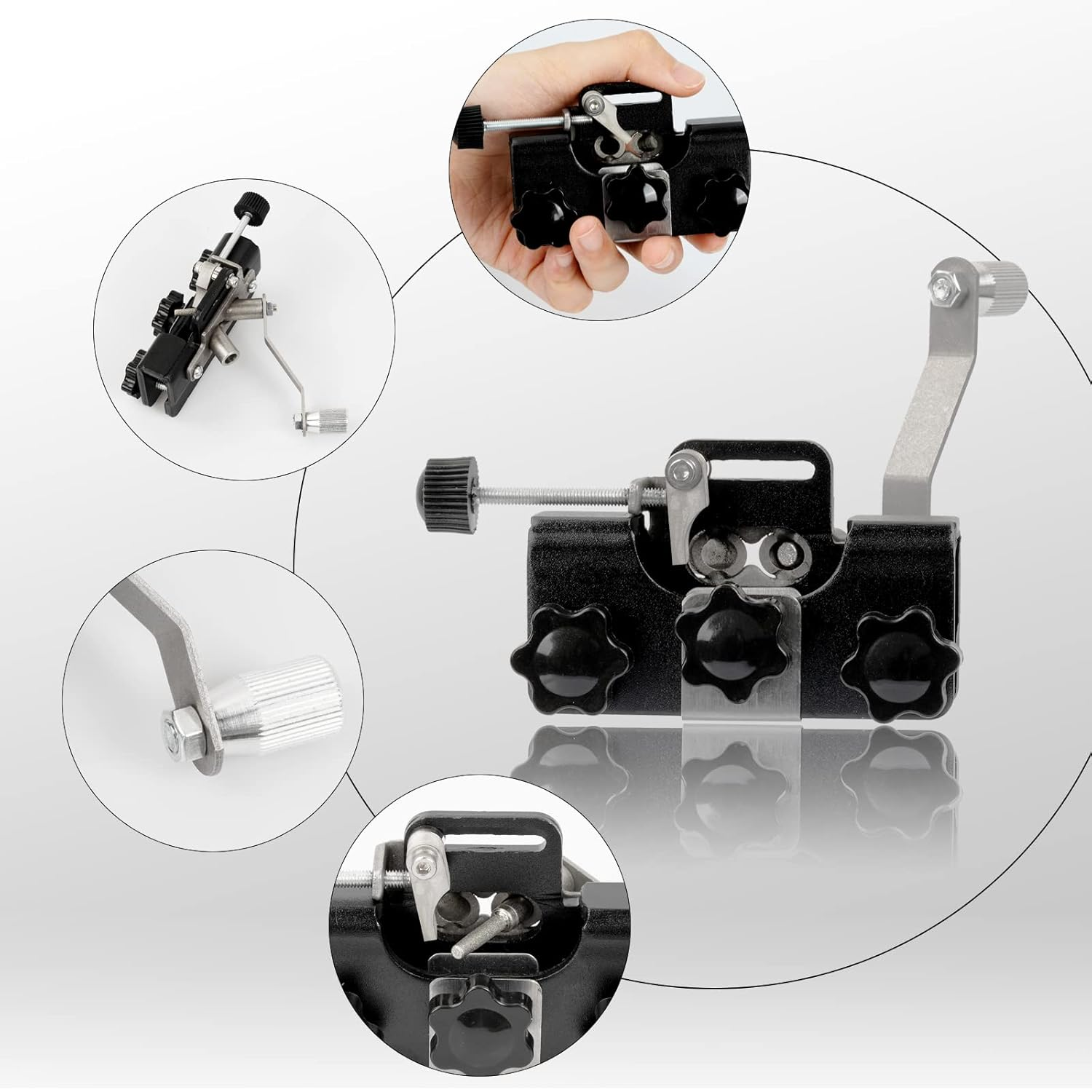 - Perfect: Unghi de ascuțire standard de 30°, suport din aluminiu anodizat cu manivelă detașabilă și manșoane de ghidare, potrivit pentru lanțuri de ferăstrău de 12-20 inch.