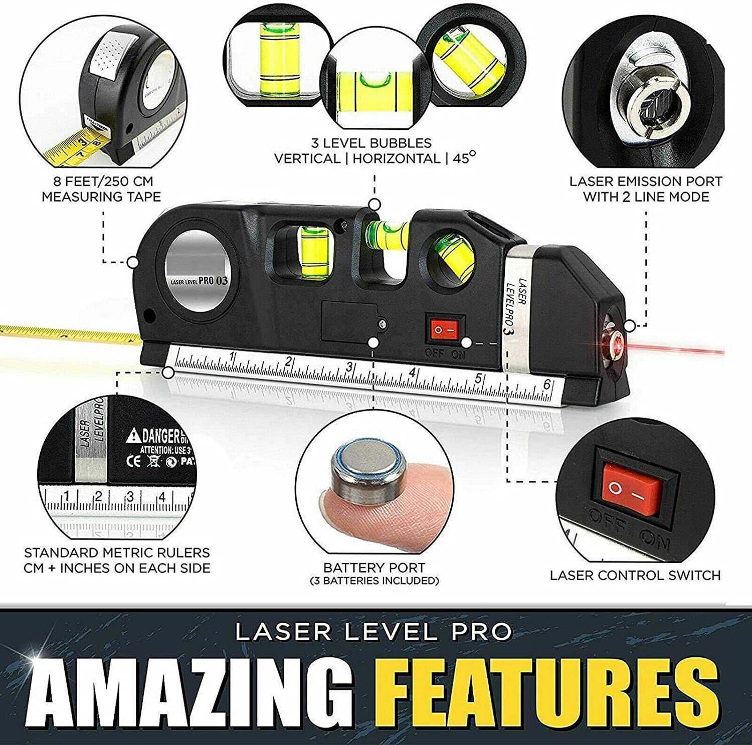 ✔ ABORDAREA ÎN 3 POLITURI - combină o bandă de măsurare reglată fin, un balon de nivelare cu trei poziții și un NOU nivel laser pentru a oferi rezultate maxime. ";Dacă laserul este Nivelul Vertical sau Nivelul Orizontal, nu ar trebui să ajustați Faza.)