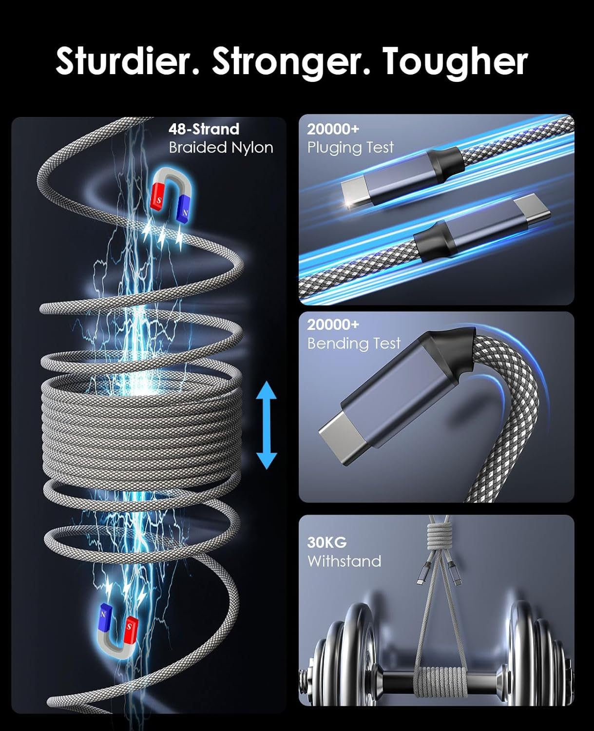 - [E-Marker Safety Chip]: Încărcare rapidă sigură. Recunoașterea inteligentă rapidă a încărcătorului previne scurtarea curentului și a tensiunii. 8 fire preferate de miez de sârmă mai gros și ecranare dublă anti-interferență fac transmisia semnalului stabilă.