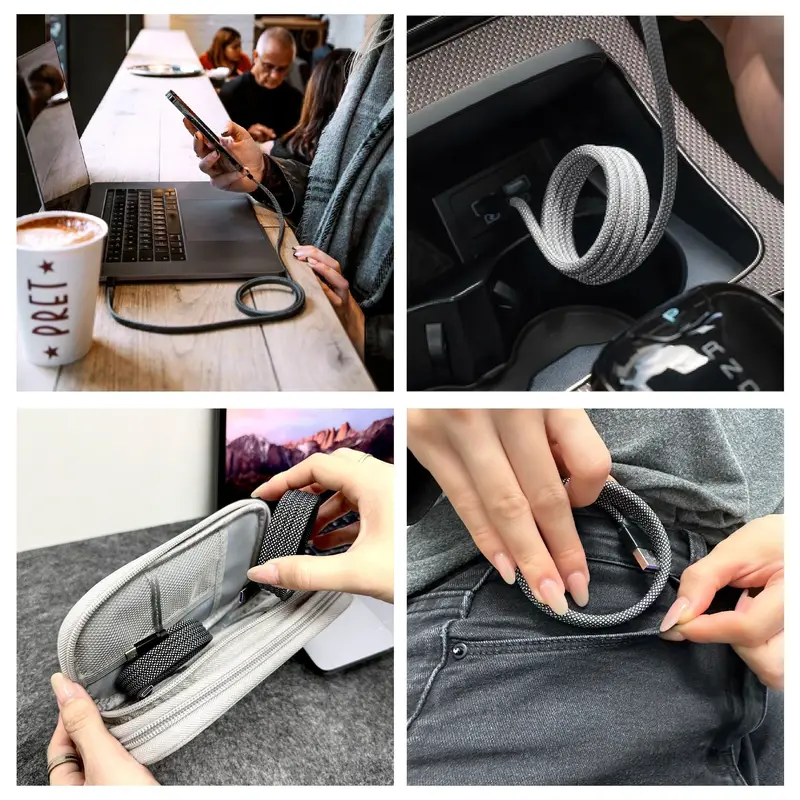 - [Design magnetic cu înfășurare automată]: Nu vă mai faceți griji pentru acele cabluri USB-c dezordonate. Îți menține cablul organizat și nu peste tot. Odată ce înfășurați cablul magnetic de încărcare pentru a-l pune deoparte, acesta își păstrează forma.