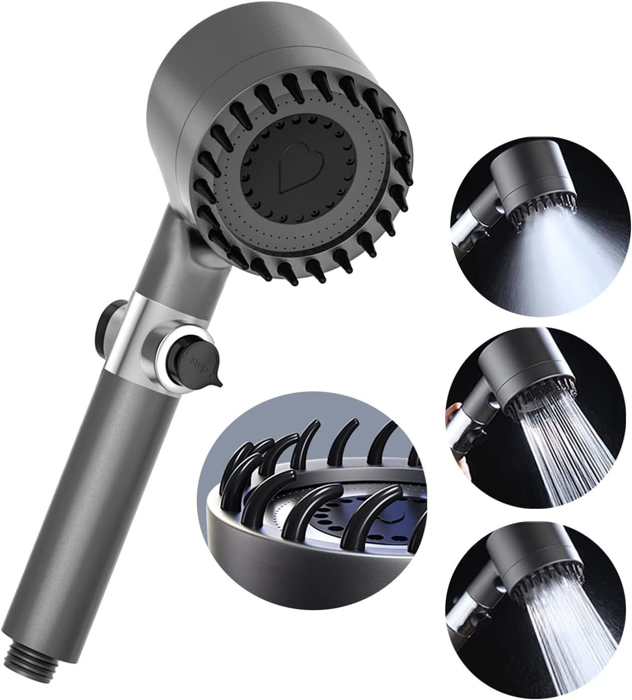 - [3 moduri de pulverizare] Capul de duș portabil este diferit de capul de duș obișnuit, deoarece vine cu 3 functii, care vă oferă o experiență diferită de duș. Pentru a satisface nevoile întregii familii în același timp, trebuie doar să comutați între ele prin atingerea unui buton.