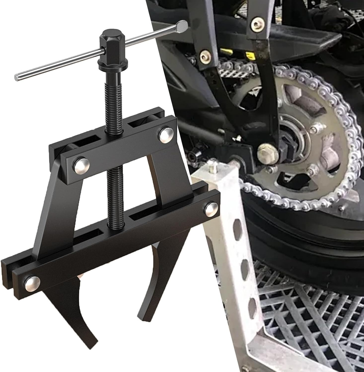 Dispozitivul CatchTight™ #100-200 este proiectat pentru a oferi o fixare fermă și controlată atunci când lucrezi cu lanțuri, pinioane sau alte piese care necesită compresie. Construcția robustă din oțel și mecanismul cu șurub filetat asigură durabilitate și o utilizare îndelungată, chiar și în condiții de atelier.