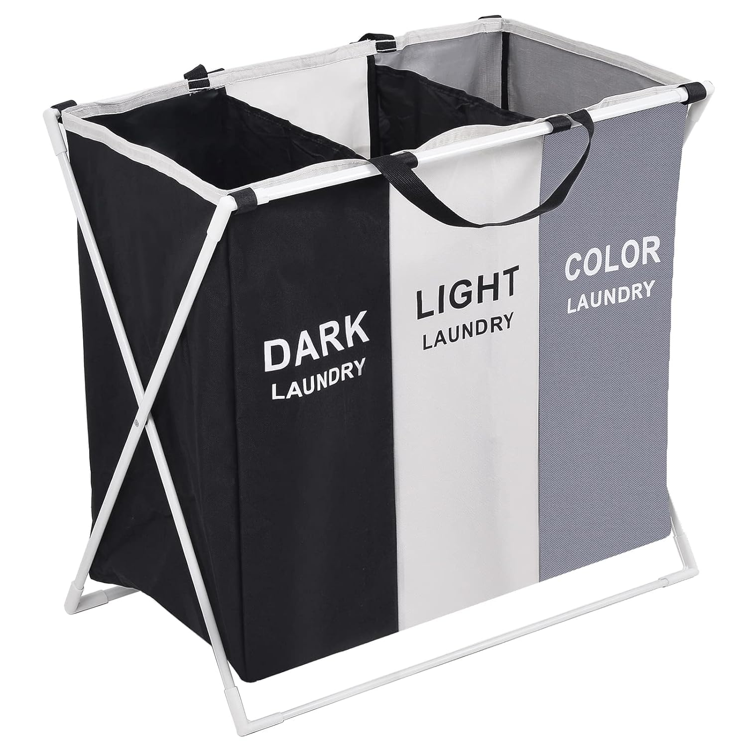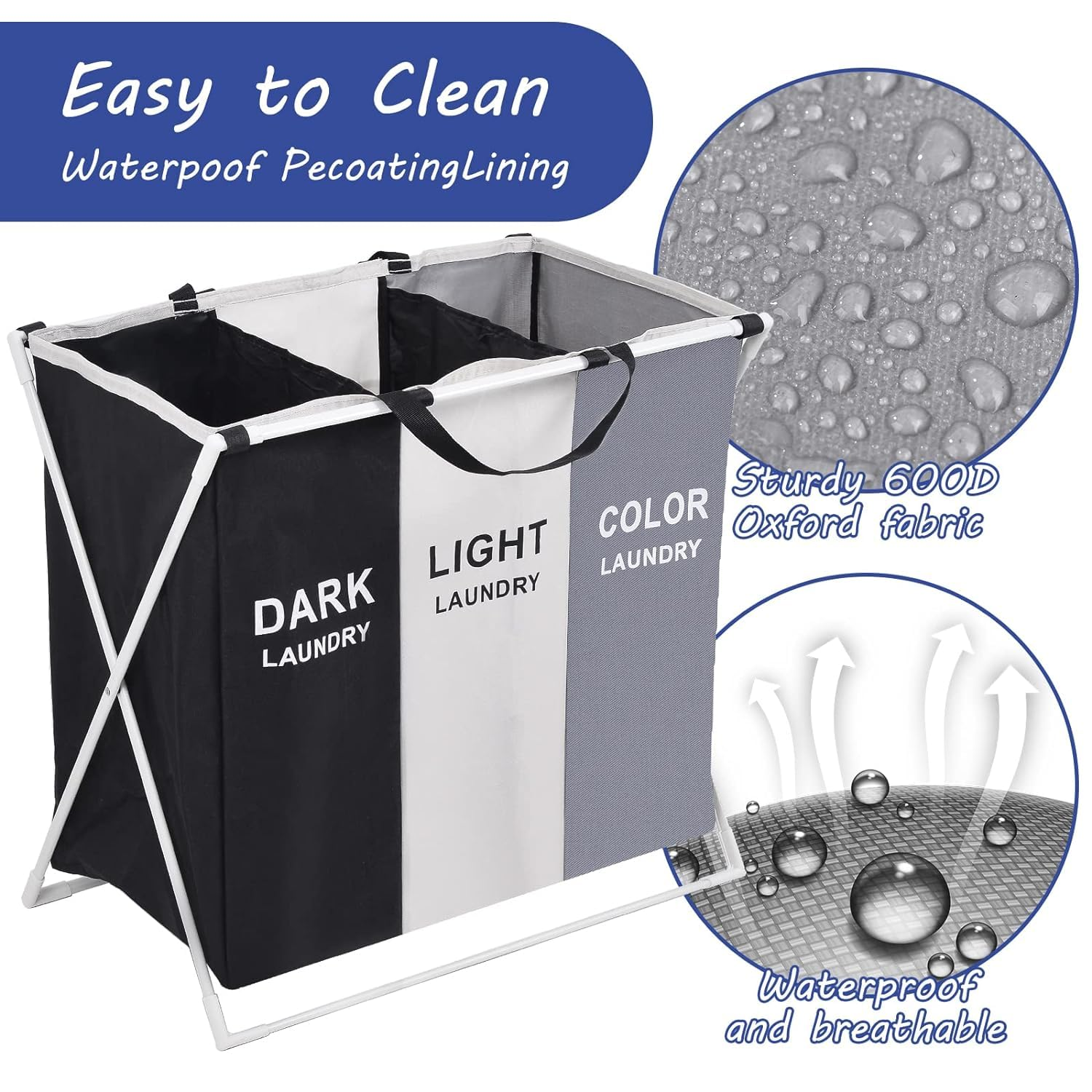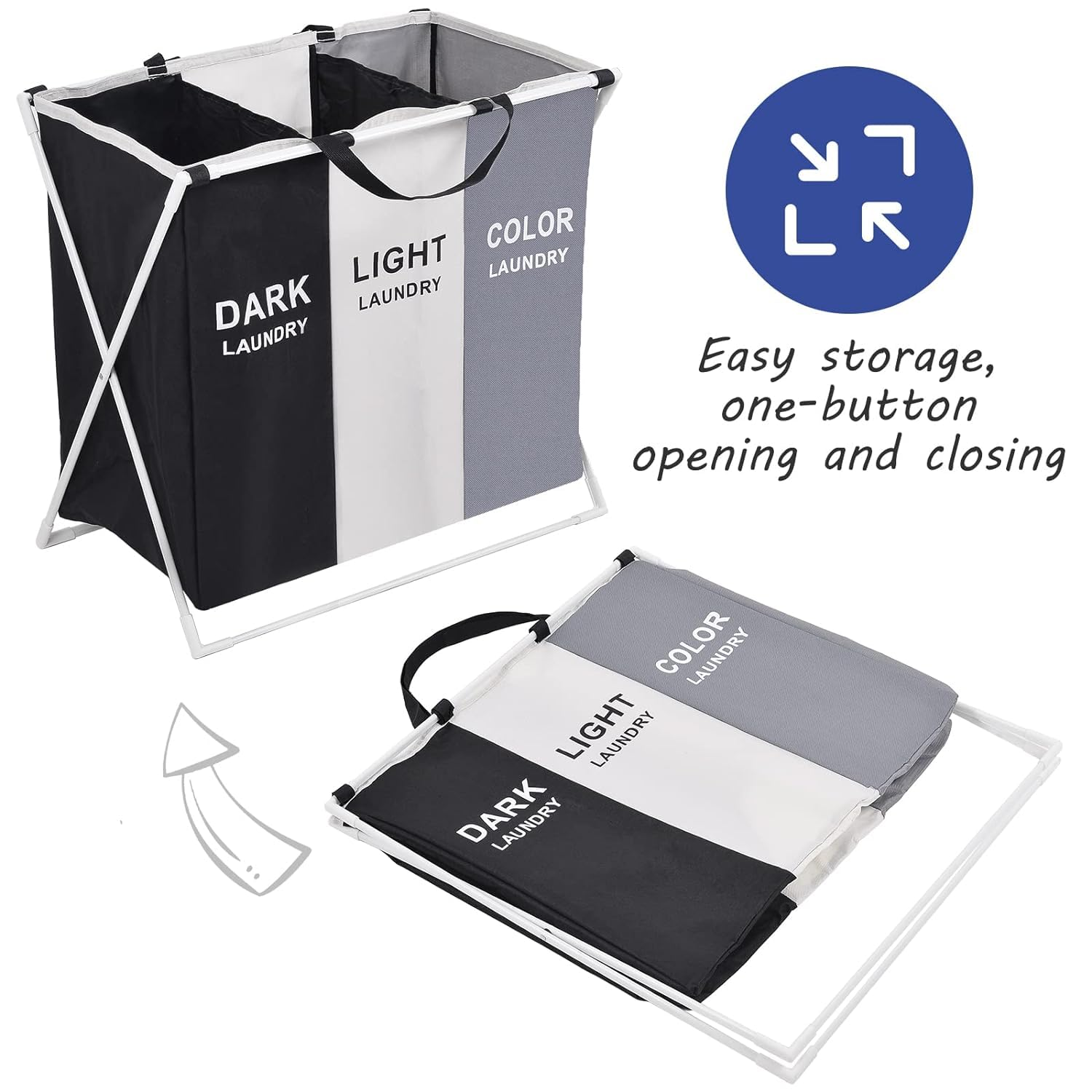 3 Compartimente: Coșul de rufe are 3 compartimente pentru pre-sortarea hainelor albe, întunecate și colorate. Ideal pentru depozitarea hainelor murdare în funcție de culoare sau tip de material.