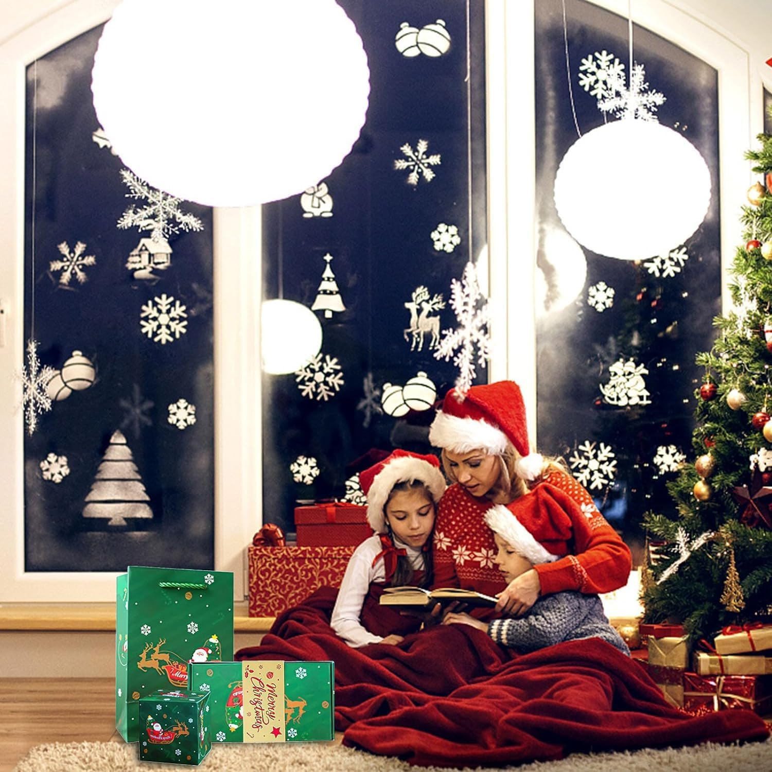 Decorată cu motive festive precum reni, fulgi de zăpadă și Moș Crăciun, cutia oferă o prezentare elegantă și veselă, ideală pentru sărbători.