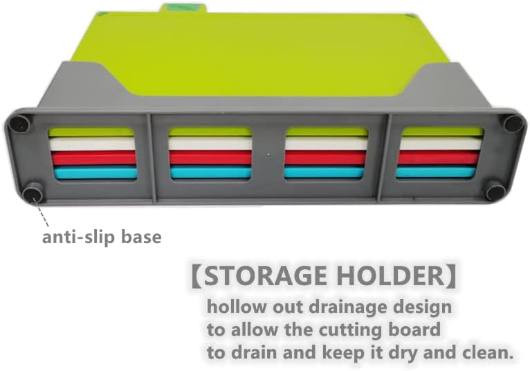 DESIGN ANTIDERAPANT: Tocătoarele noastre sunt echipate cu picioare antiderapante și margini pentru a face tăierea și tocarea mai ușoare și mai sigure. Cutia de depozitare are, de asemenea, picioare antiderapante pentru acces și depozitare facilă.