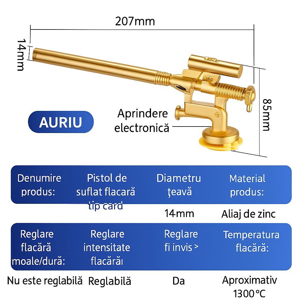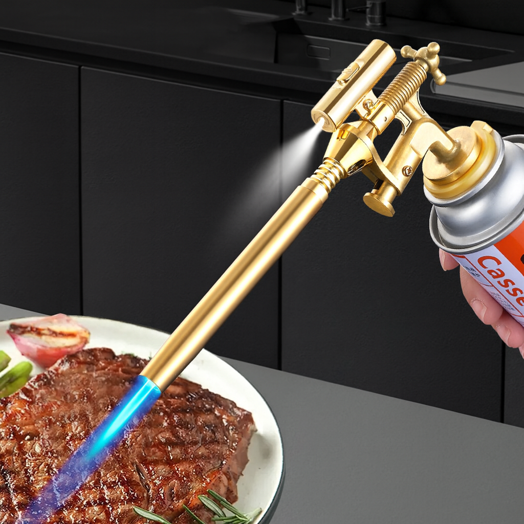 - Flacără reglabilă de mare intensitate – ajustează cu precizie nivelul căldurii pentru caramelizare, flambare sau lipituri fine.