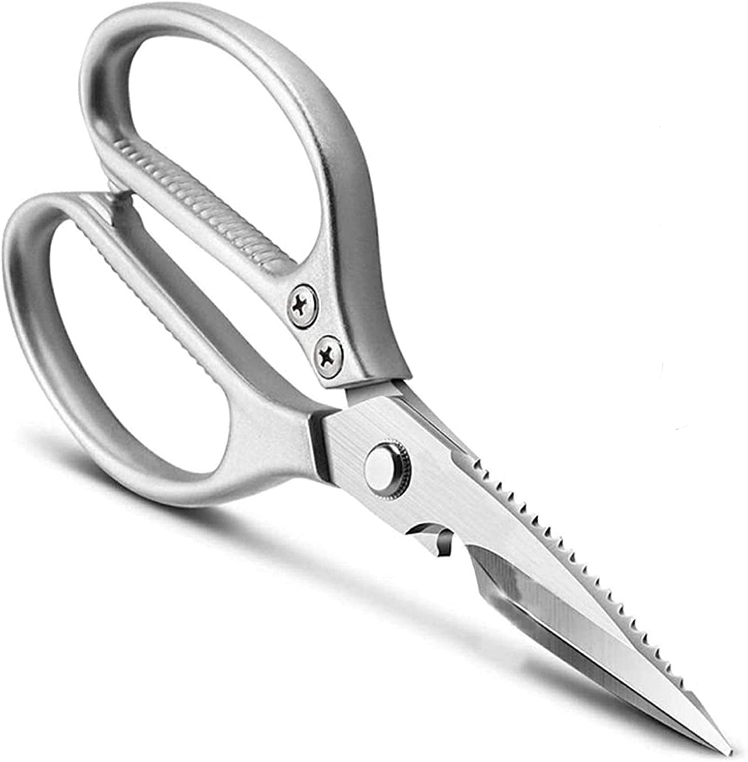 - Design ergonomic: Mânerul confortabil, antiderapant, din aliaj de aluminiu, asigură un plus de stabilitate și confort cu prinderea, pentru a se potrivi perfect mâinilor tale stângi și drepte. În plus, foarfecele noastre profesionale de bucătărie au un șurub reglabil pentru strângerea sau slăbirea tensiunii. Fără un șurub reglabil, lamele se pot slăbi la pivot și se pot desprinde atunci când se exercită presiune.