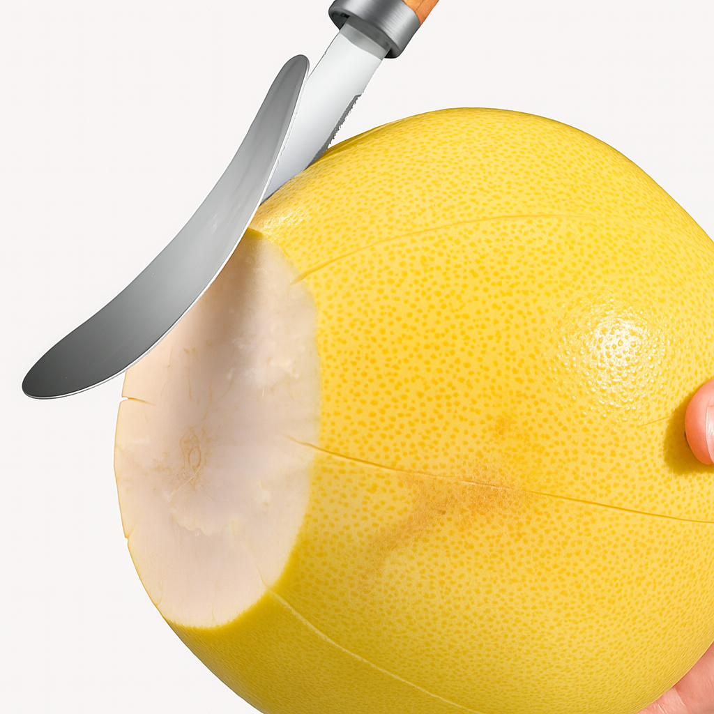 Curățarea fructelor precum grapefruitul, pomelo sau rodiile nu a fost niciodată mai simplă! Cu Grapefruit Peeler 304™, scapi de cuțitele periculoase și de procedurile anevoioase. Lama din oțel inoxidabil 304 taie cu precizie coaja groasă fără a afecta pulpa fructului. Designul său ergonomic și ușor de manevrat face ca procesul să fie sigur, rapid și eficient.