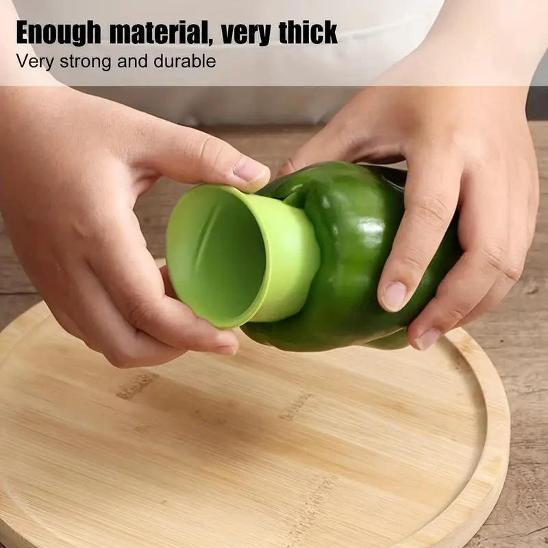- Simplu de manevrat: introduci accesoriul în interiorul legumei și rotești ușor pentru a desprinde cotorul și semințele.