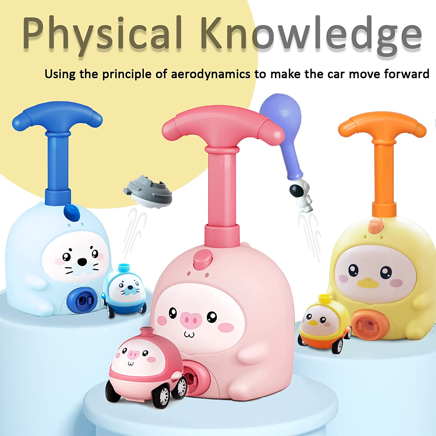 - Design multifuncțional: nu este nevoie de alimentare cu energie, prin frecare aerodinamică pentru a opera jucăriile, buton cu o singură apăsare pentru a activa mașina să alerge înainte, transportă cu pompă de balon și dispozitiv de lansare pentru a face balonul să zboare în același timp, ceea ce îl face atractiv pentru copii.