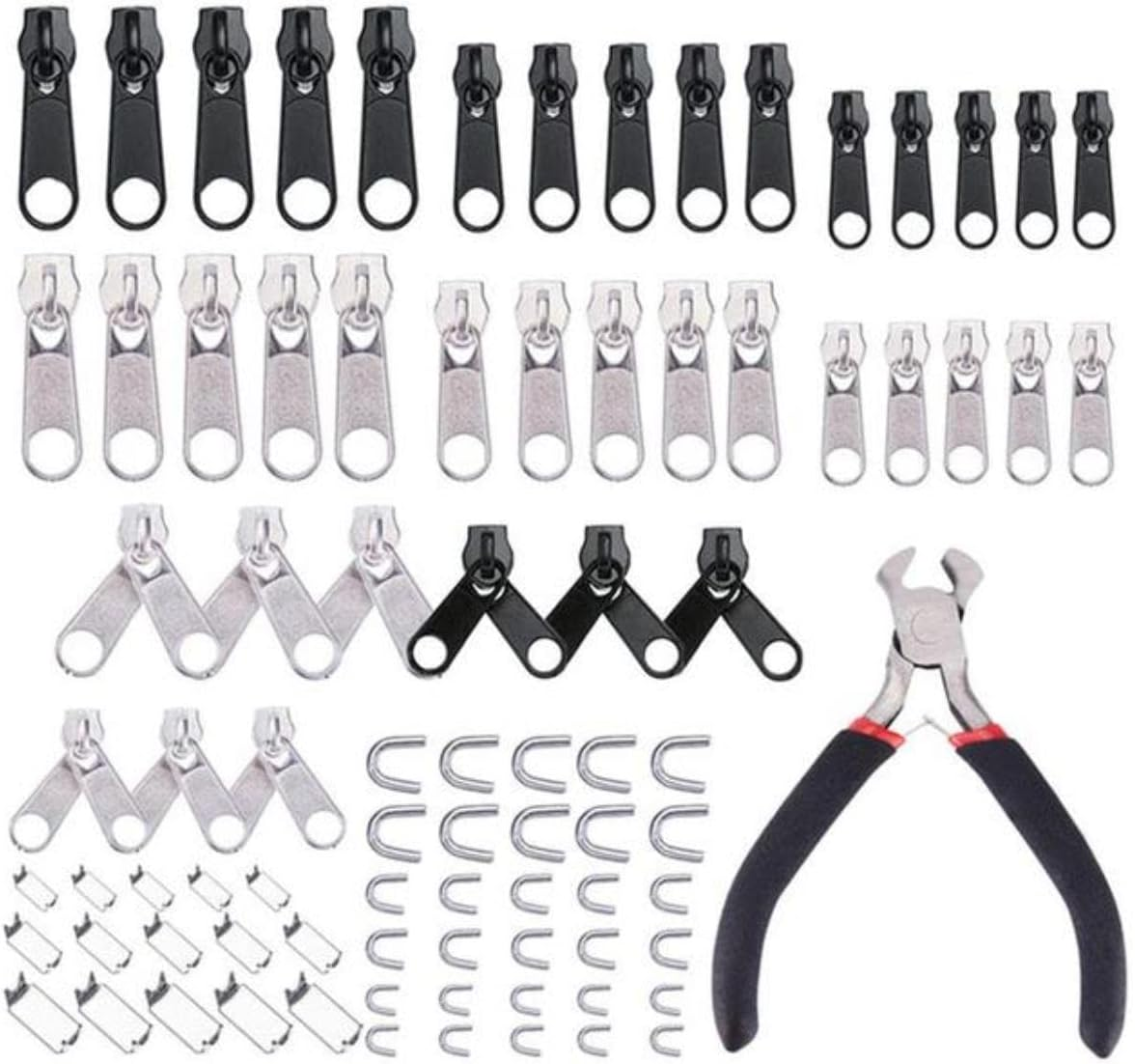 Cu 84 de piese de tragere a fermoarului și o unealtă pentru instalarea fermoarelor, acest kit de reparare oferă toate componentele necesare pentru a restaura fermoarele blocate sau rupte.