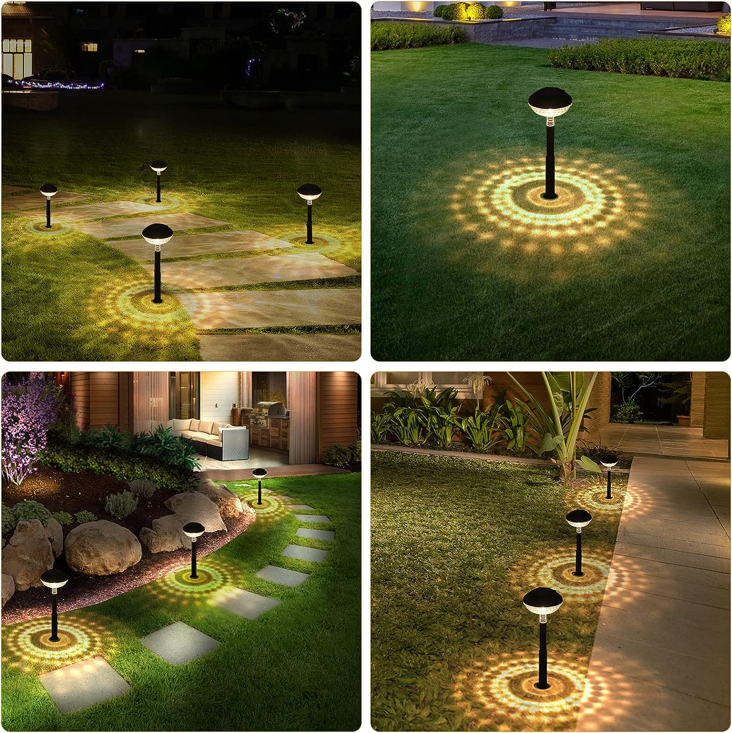 【Lumini strălucitoare și modele frumoase】 Luminile solare de exterior folosesc margele de lampă LED de mare putere și abajururi cu transmisie ridicată a luminii pentru a face luminile noastre solare de grădină mai luminoase decât luminile solare obișnuite. Designul unic de umbră al luminilor solare de curte aruncă modele superbe de floarea soarelui pe gazon, decorează gazonul, curtea, curtea, aleea, făcându-le colorate și frumoase. Veți primi cu ușurință complimente de la vecini și oaspeți pentru aceste lumini pentru cărări peisagistice!