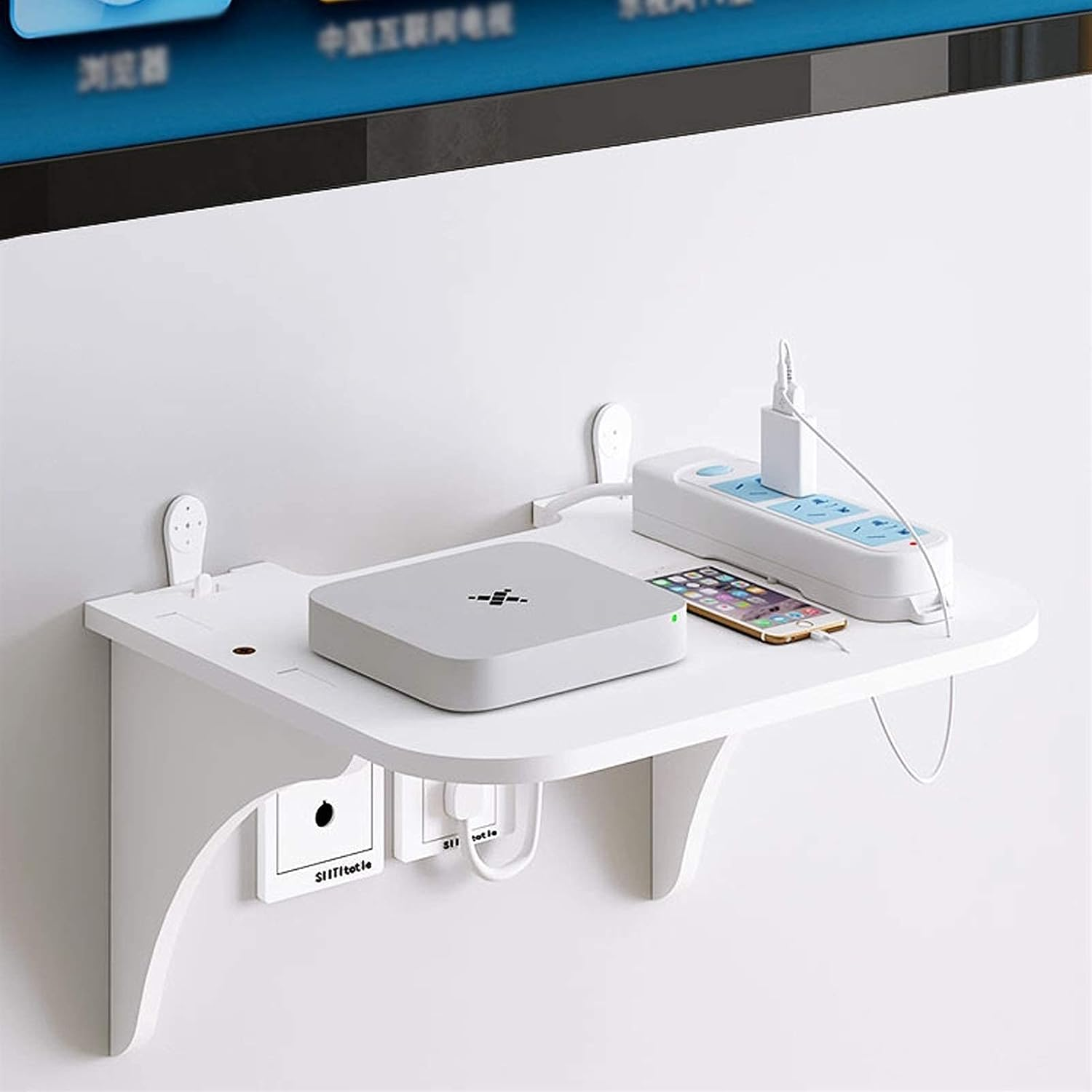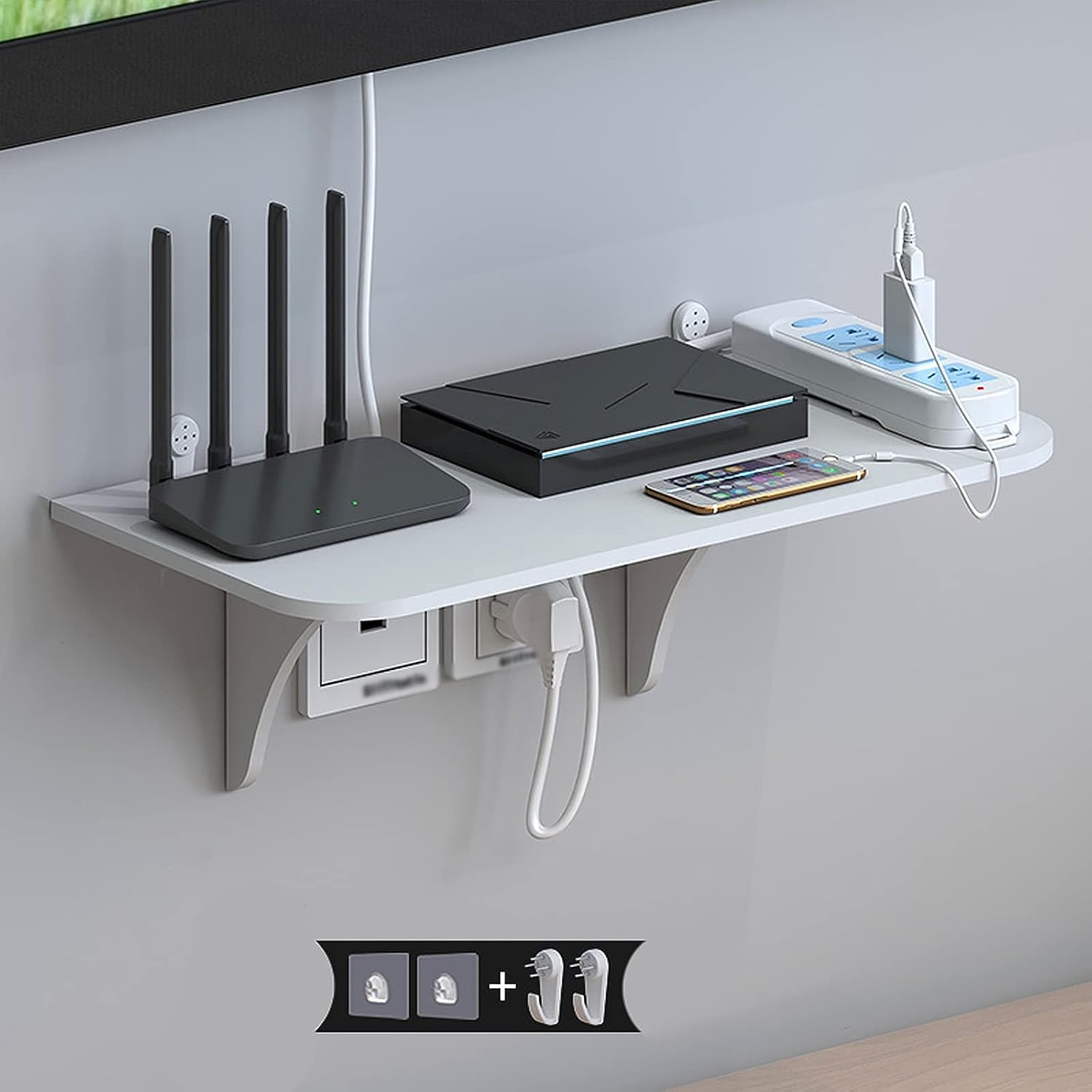 - Raft plutitor multifuncțional: Dotat cu găuri pentru cabluri care ascund firele dezordonate, păstrând lucrurile organizate și la îndemână. Slotul pentru antena routerului este compatibil cu diverse tipuri de set-top box. Designul cu colțuri rotunjite previne eficient impactul coliziunilor și evită accidentările.