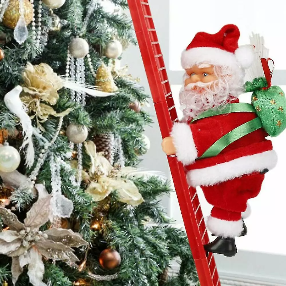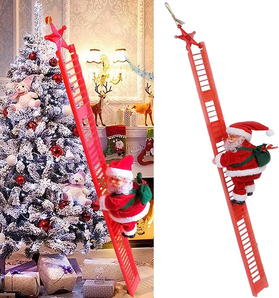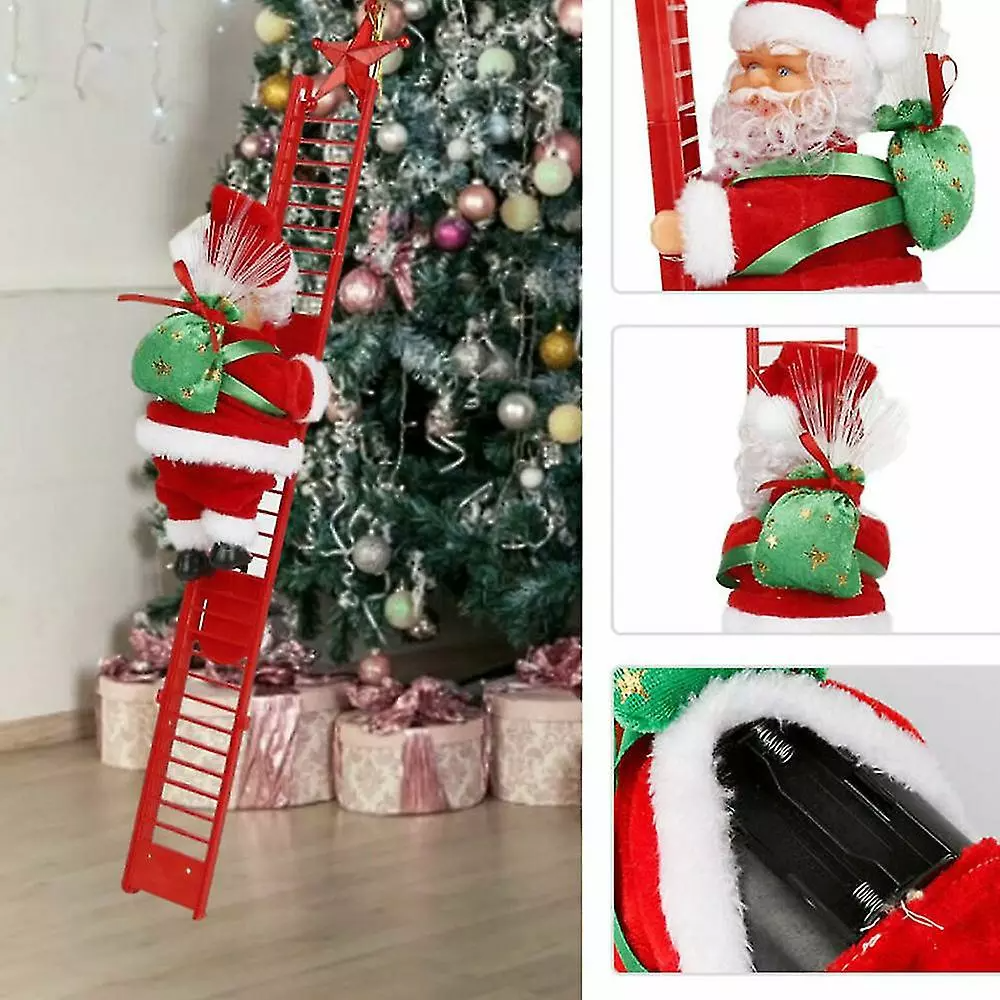 - Acest ornament electric pentru cățărare pentru brad de Moș Crăciun este fabricat din PVC și pluș de înaltă calitate, Moș Crăciun nu este ușor de deteriorat și durabil. Sigur și durabil, Scara de cățărat Moș Crăciun este tăiată cu grijă, cu un puternic simț stereoscopic.