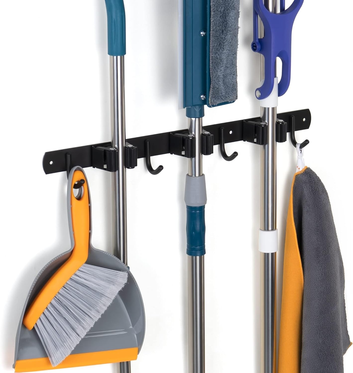 - ECONOMISITOR DE SPAȚIU: Capacitatea acestui suport de perete pentru mopuri este de 3 rafturi și 4 cârlige, oferind în total 7 poziții de agățat. Organizatorul de mătură economisește spațiu, utilizând eficient spațiul de pe perete și menține toate uneltele în loc, lăsând o cameră ordonată pentru casa ta.