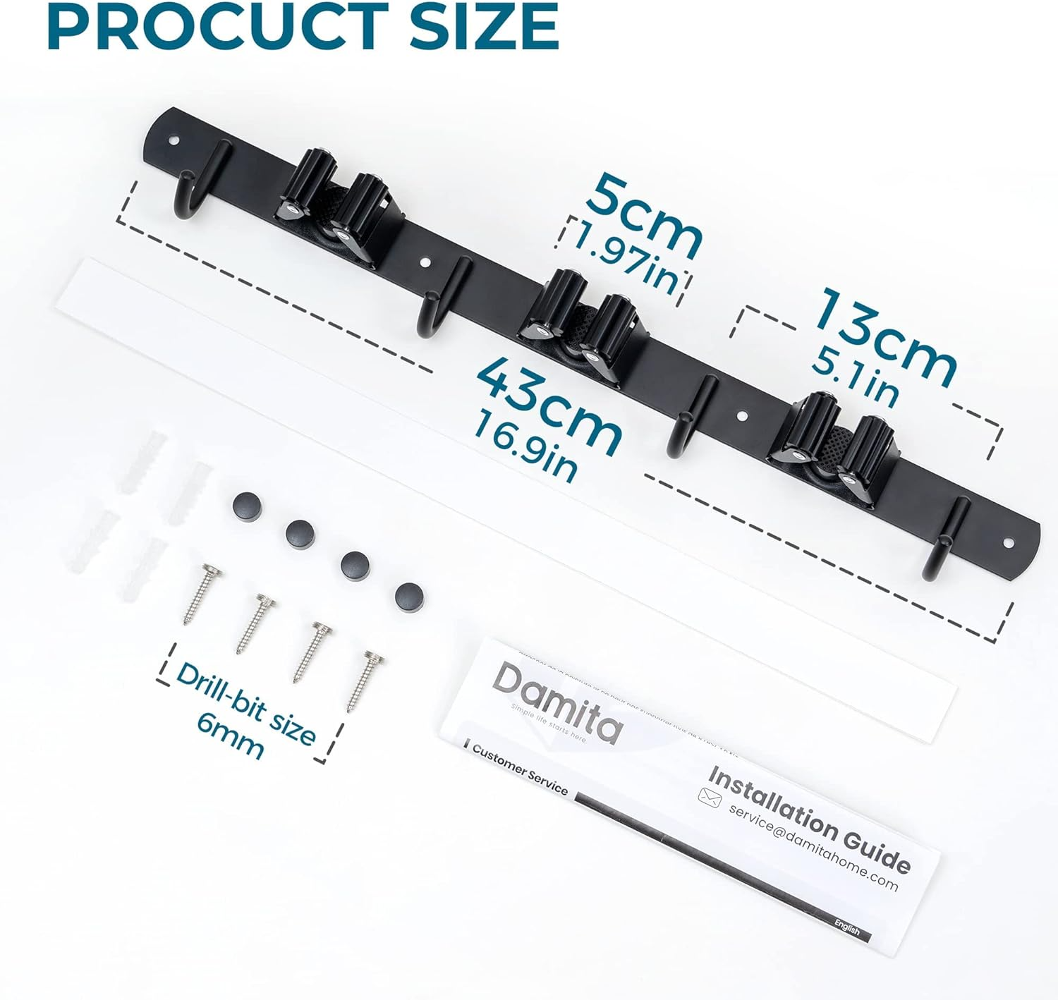 - UTILIZARE MULTIPLĂ: Suportul pentru mătură Damita este un ajutor de nădejde pentru organizarea ustensilelor de uz casnic în diverse locuri, cum ar fi bucătăria, grădina, garajul, spălătoria și altele. Oferă suficient spațiu pentru a depozita diversele tale instrumente de curățenie, cum ar fi mopuri, mături, mănuși, cârpe și alte accesorii necesare, făcând organizarea mai ușoară.