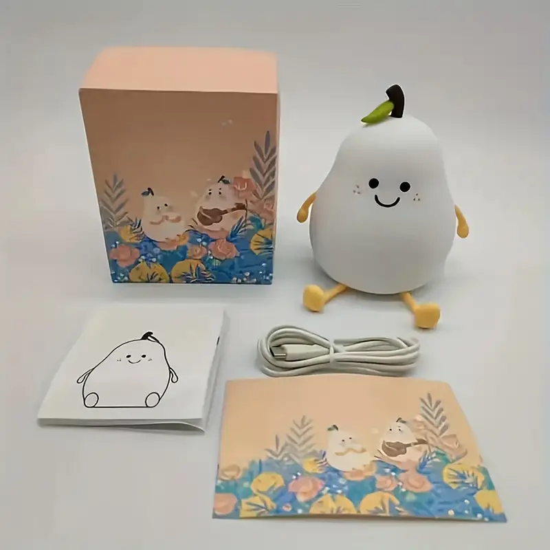 Creează un mediu plăcut și confortabil pentru somn cu PearGlow™, lampa de noapte adorabilă din silicon în formă de pară, ideală pentru camera copiilor. Fabricată din silicon moale și sigur, fără colțuri sau margini dure, această lampă este perfectă pentru a fi ținută sau jucată de către copii. Cu funcția de schimbare a culorilor și luminozitatea reglabilă, PearGlow™ aduce o atmosferă relaxantă și prietenoasă pentru cei mici.