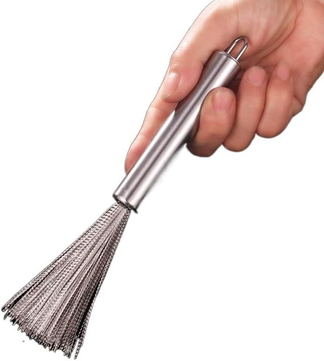 - Perie de oțel cu mâner lung din oțel inoxidabil, ușor de curățat, puternică în decontaminare, perie fină din oțel, poate fi folosită în mod repetat, nu deteriorează vesela, decontaminează eficient, o perie are mai multe scopuri, nu numai pentru spălarea vaselor, ci și un kit versatil ro experți