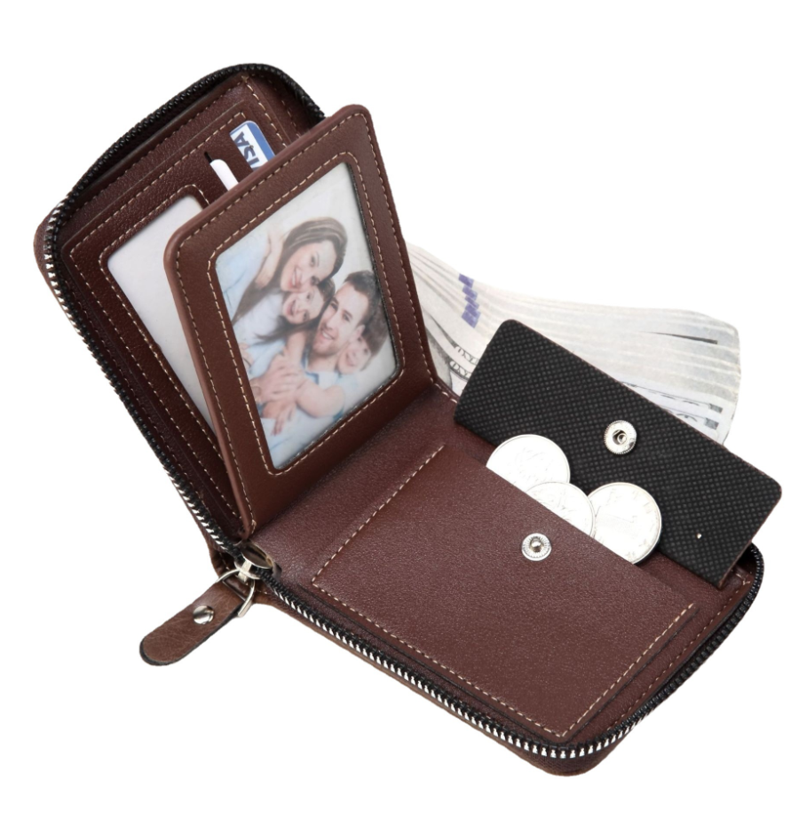 Portofelele de bărbați au multiple compartimente interioare pentru carduri și un buzunar pentru monede sau alte obiecte mici.