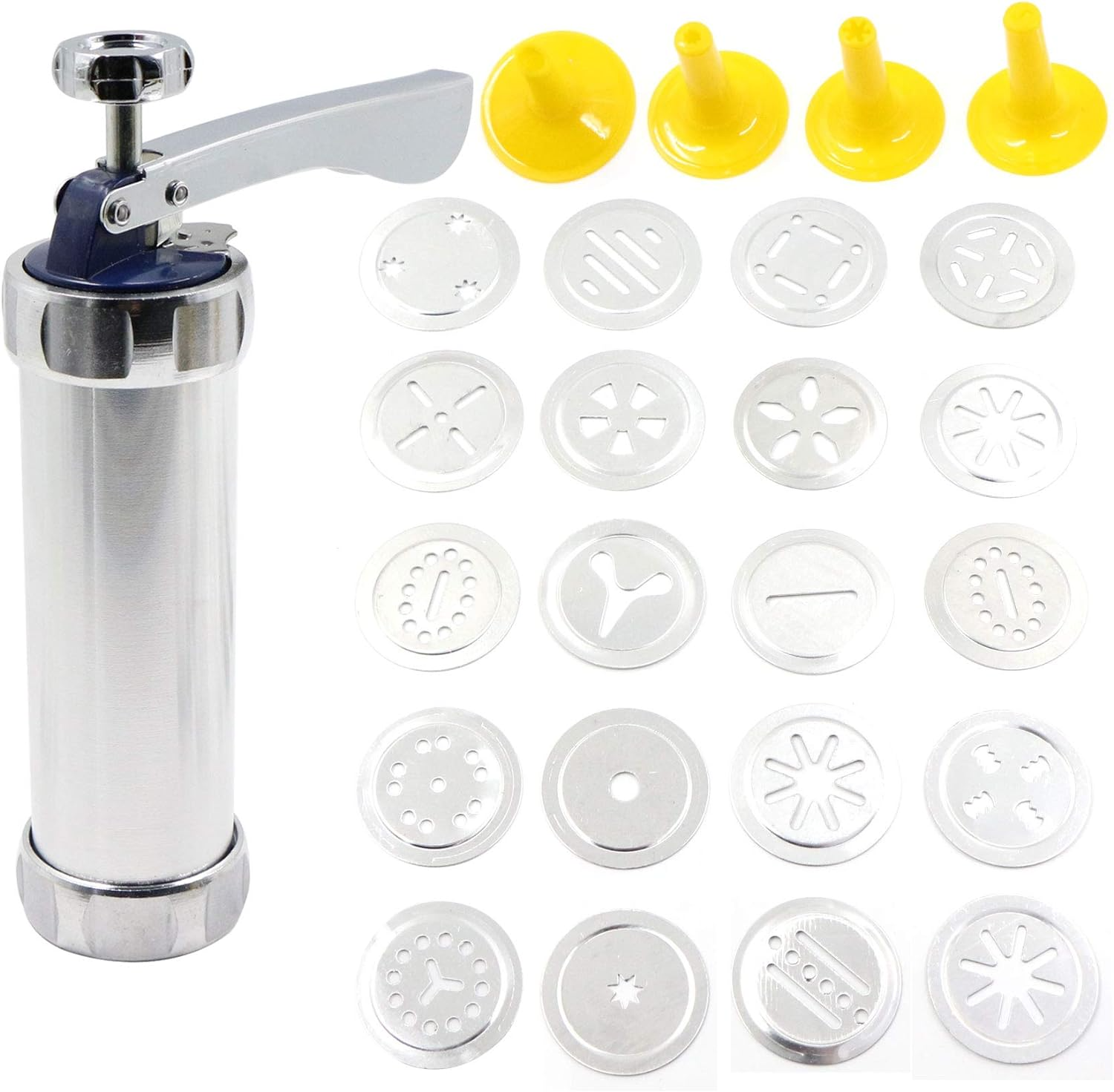 - Un bun asistent de coacere: presa de coacere contine o seringa decorativa, 20 de discuri formate si 4 duze din plastic. Acestea vă oferă posibilitatea de a face biscuiți și prăjituri unice care vă satisfac diferitele nevoi.