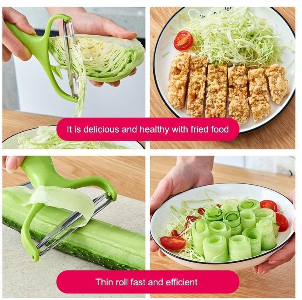 - Curățător multifuncțional, poate tăia legumele și fructele în felii spirale și fâșii.