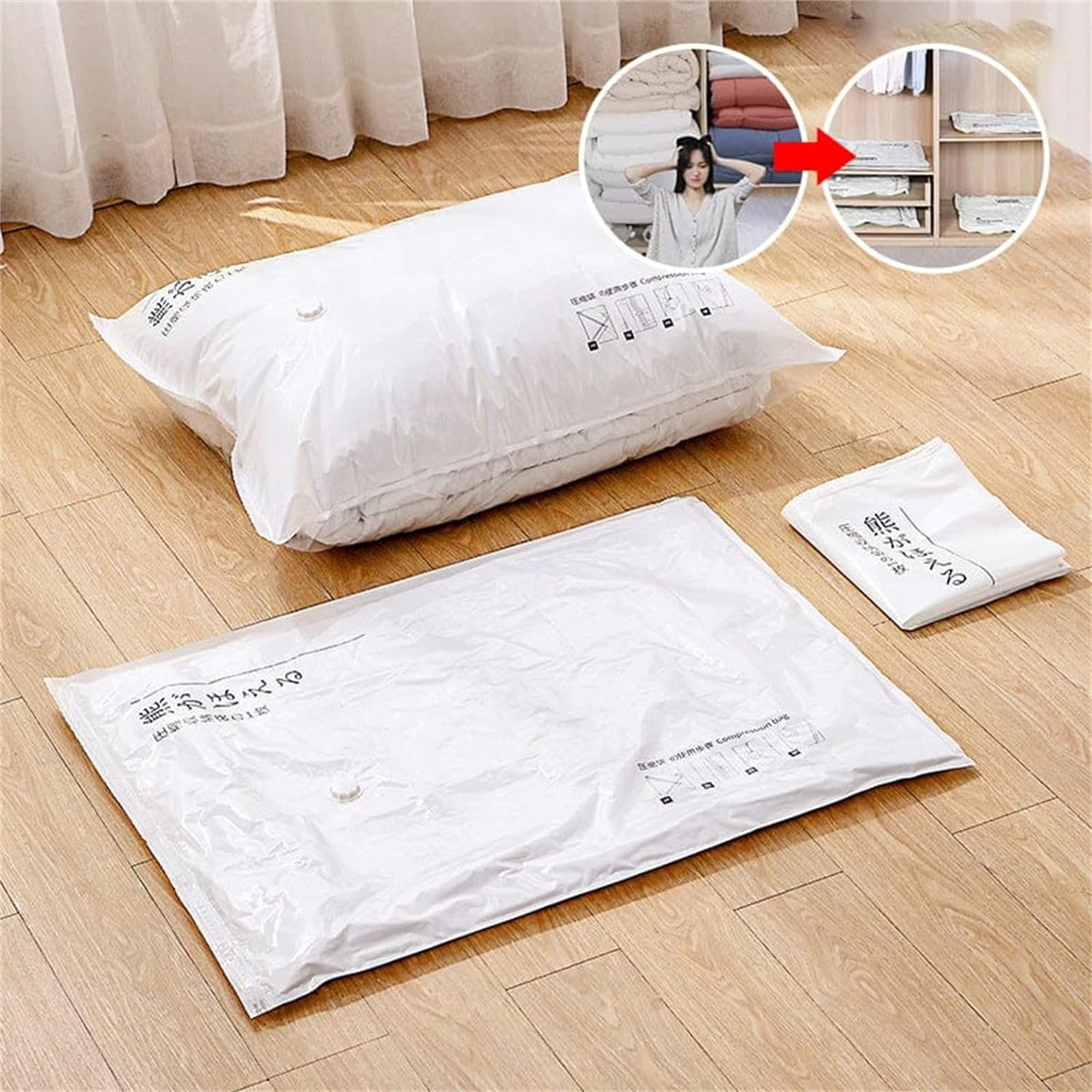 Cumpără Saci de compresie în vid (Set 5 Bucăți + Pompă) și bucură-te de mai mult spațiu, o casă ordonată și articole textile protejate în orice sezon!