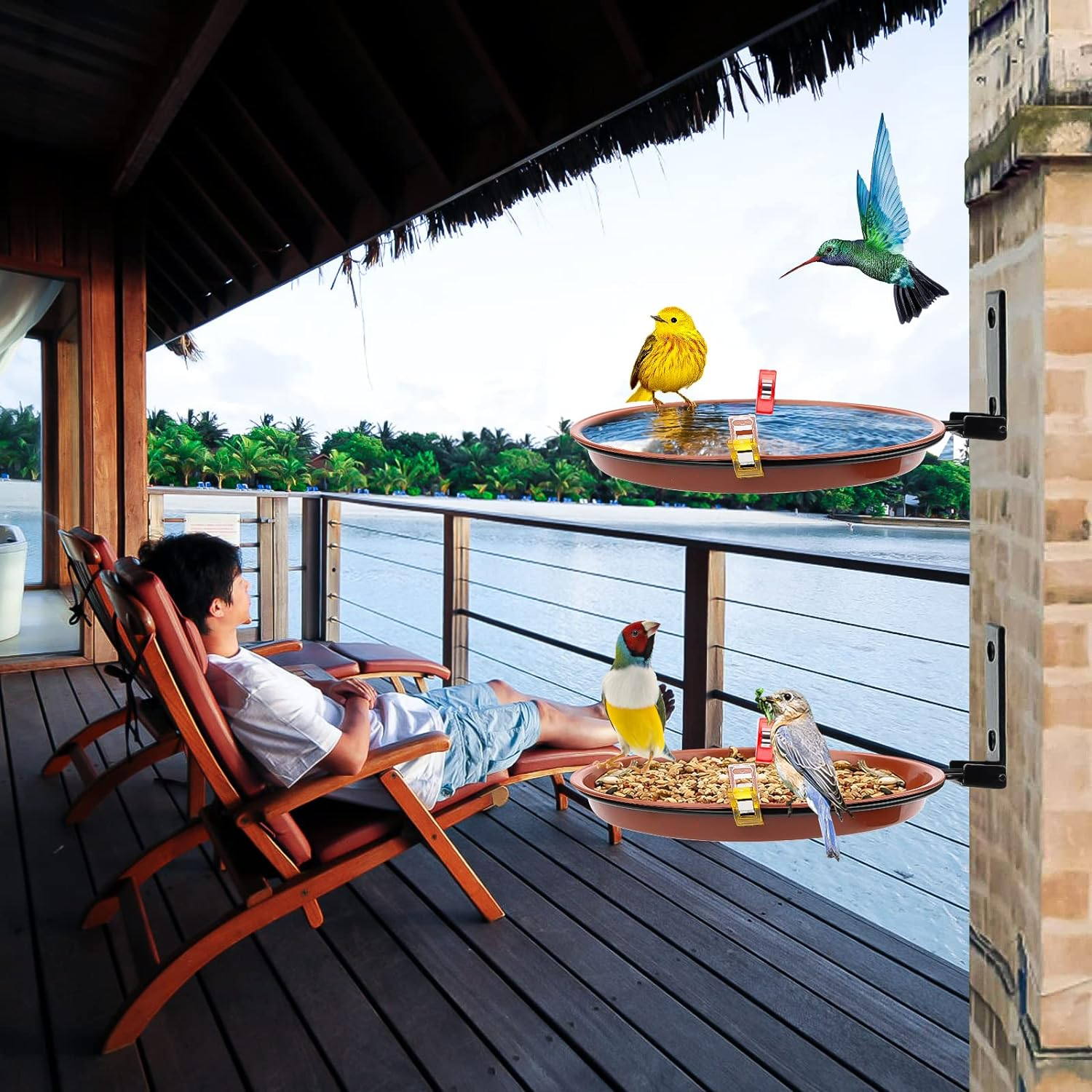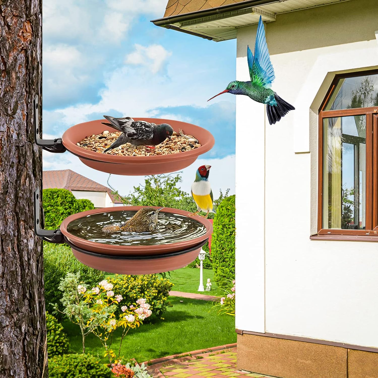 Baie pentru Păsări de Exterior: Această baie robustă pentru păsări de exterior este perfectă pentru păsările sălbatice și colibri pentru a bea și a se scălda, oferindu-le apă curată și hrană necesară.