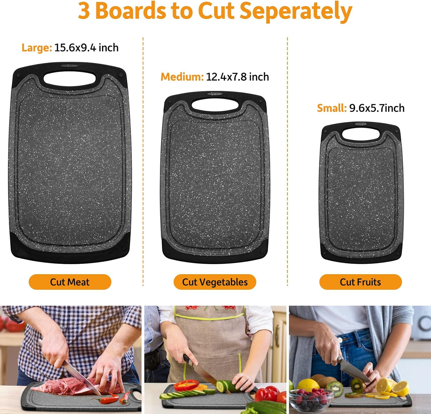Garanție de Satisfacție: Te ajutăm cu orice nelămurire legată de produsul sau comanda ta. Designul elegant de marmură aduce o experiență senzorială de calitate în bucătăria ta. Tava de tăiat se utilizează pe ambele părți. Setul de tăvi de tăiat de 3 piese este un mare plus pentru bucătărie, restaurant, bar, activități în aer liber, grătar, picnic, camping sau călătorii.