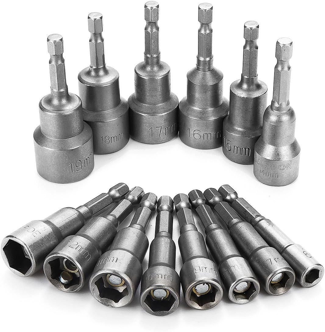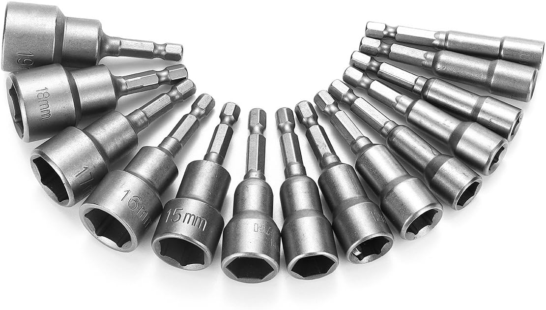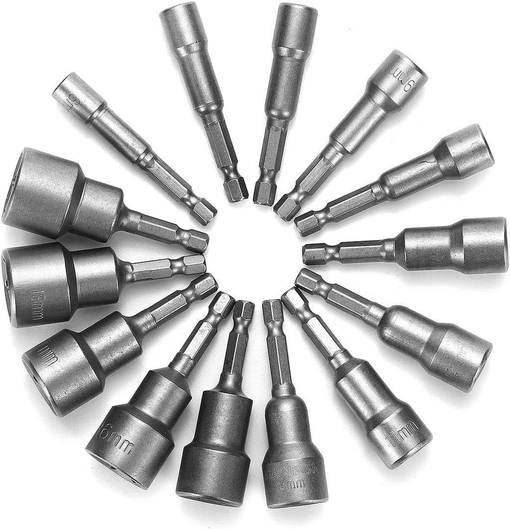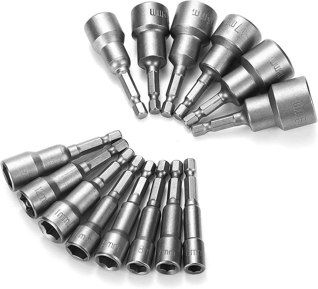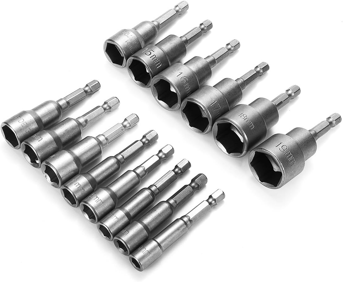 Set de 10 bucăți, adaptor magnetic pentru șurubelniță cu cap nut șaibă, 6-15mm, 1/4 inch, hexagonal.