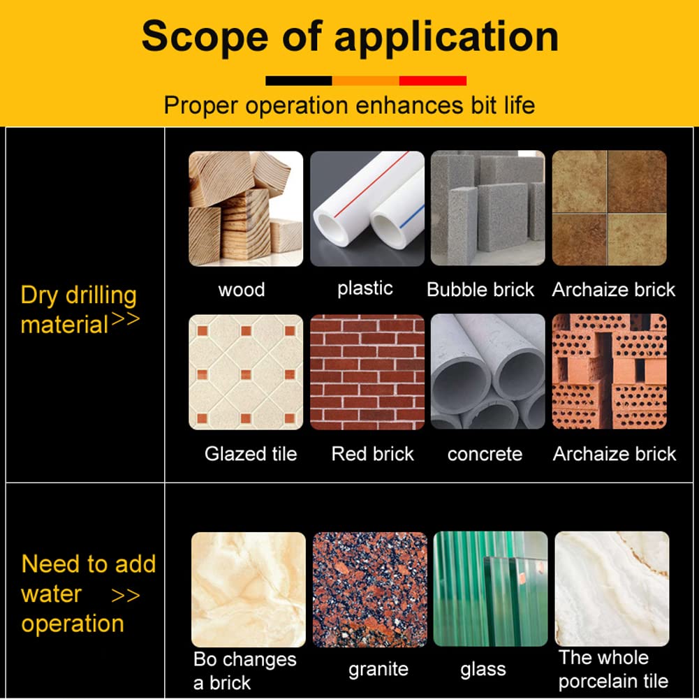 - [Potrivit pentru o mulțime de materiale diferite, cum ar fi lemn, cărămidă spumă, cărămidă vitrificată, sticlă și alte materiale, are o largă aplicație.