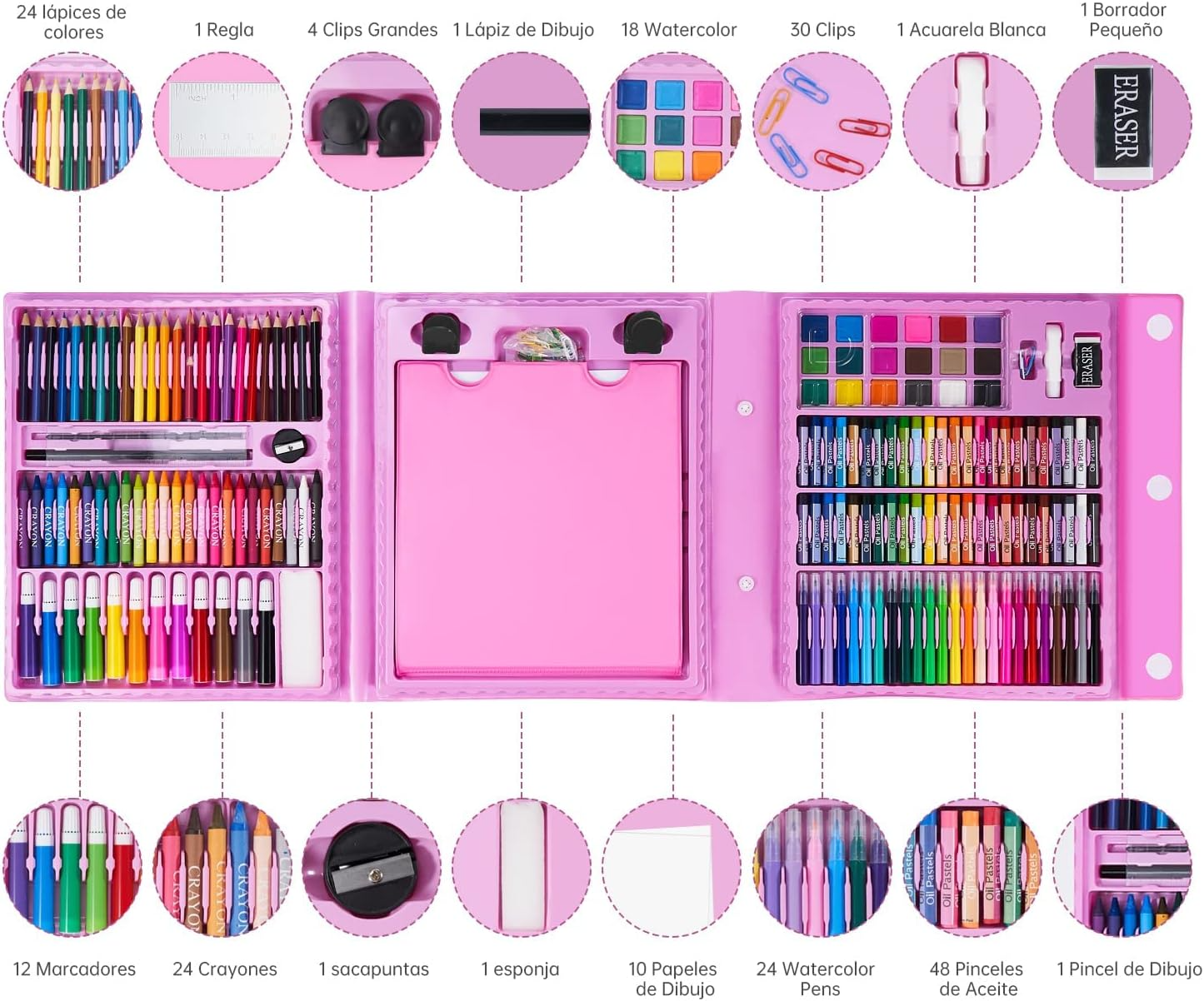 - Cadou de sărbători: trusa de desen de 280 de bucăți este potrivită ca cadou pentru copii sau iubitorii de desen de Crăciun, ziua de naștere, Ziua Recunoștinței, Anul Nou etc.