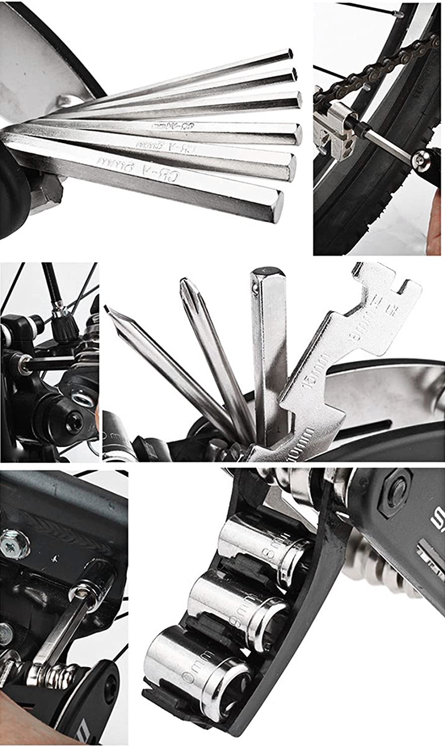 - Acest tip de instrument de reparare multifuncțional poate fi folosit pentru diferite reparații de biciclete.