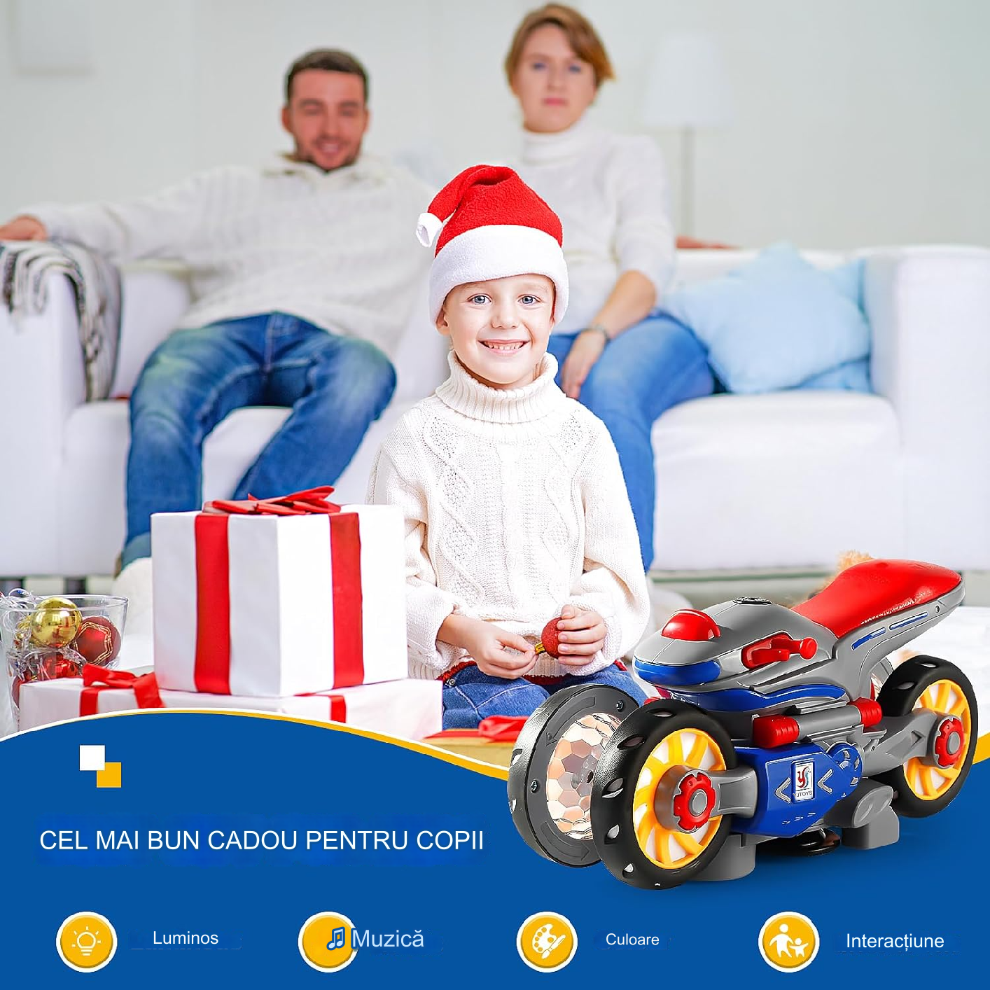 【Pline de creativitate】Copiii de mașini de jucărie nu numai că au modele interesante de motociclete, ci și lumini intermitente LED atrăgătoare și efecte muzicale dinamice. Jucăria multifuncțională pentru băieți trei în unu va deveni „jucăria vedetă” în ochii copiilor, permițându-le să câștige un sentiment de realizare și fericire, menținându-și valoarea de divertisment și atrăgând eficient atenția copilului tău. Dacă vrei ca copilul tău să aibă o jucărie populară, această mașină de jucărie pentru băieți este cu siguranță o alegere excelentă.