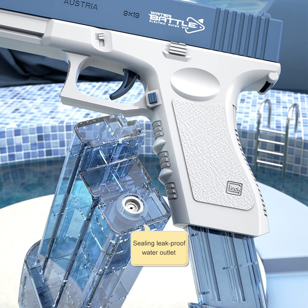 - Ușor de utilizat: acest pistol electric cu apă este ușor de utilizat. Pur și simplu porniți butonul, va avea o înregistrare electrică în serie. Pune apa direct în rezervorul de apă dacă nu este suficientă apă pentru a te juca.
