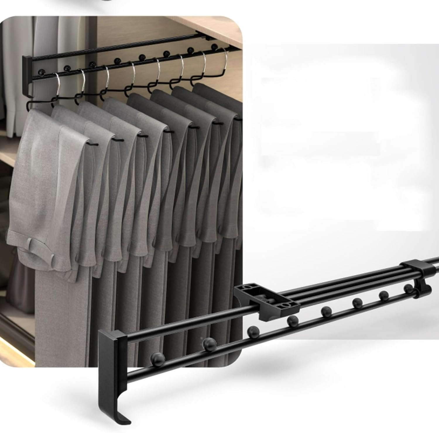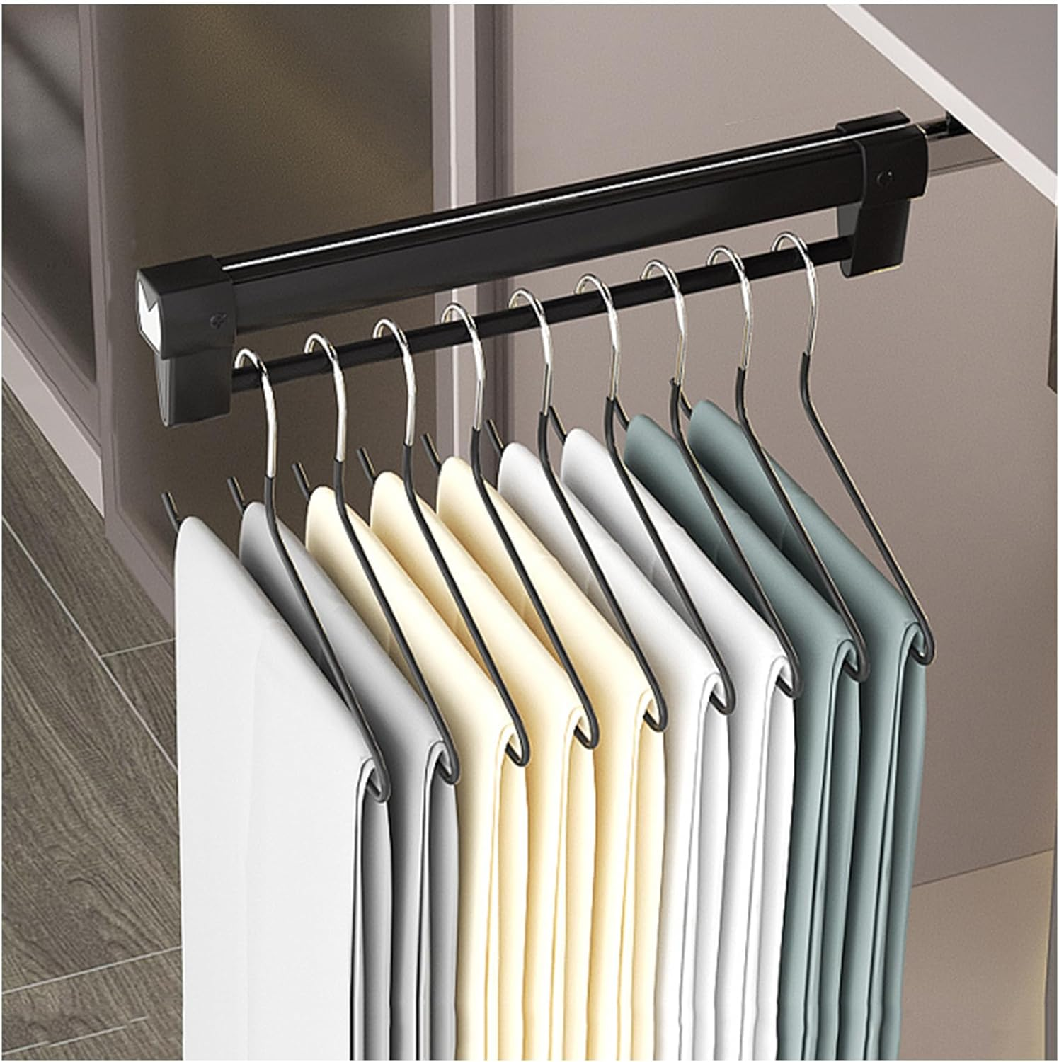 Organizator Multifuncțional: Suportul cu șină din oțel inoxidabil are un design multifuncțional care satisface diversele necesități ale gospodăriilor moderne. Este ideal pentru depozitarea și organizarea hainelor, cravatelor, eșarfelor și pantalonilor, menținând totul ordonat și la locul lui.
