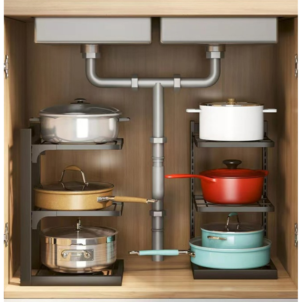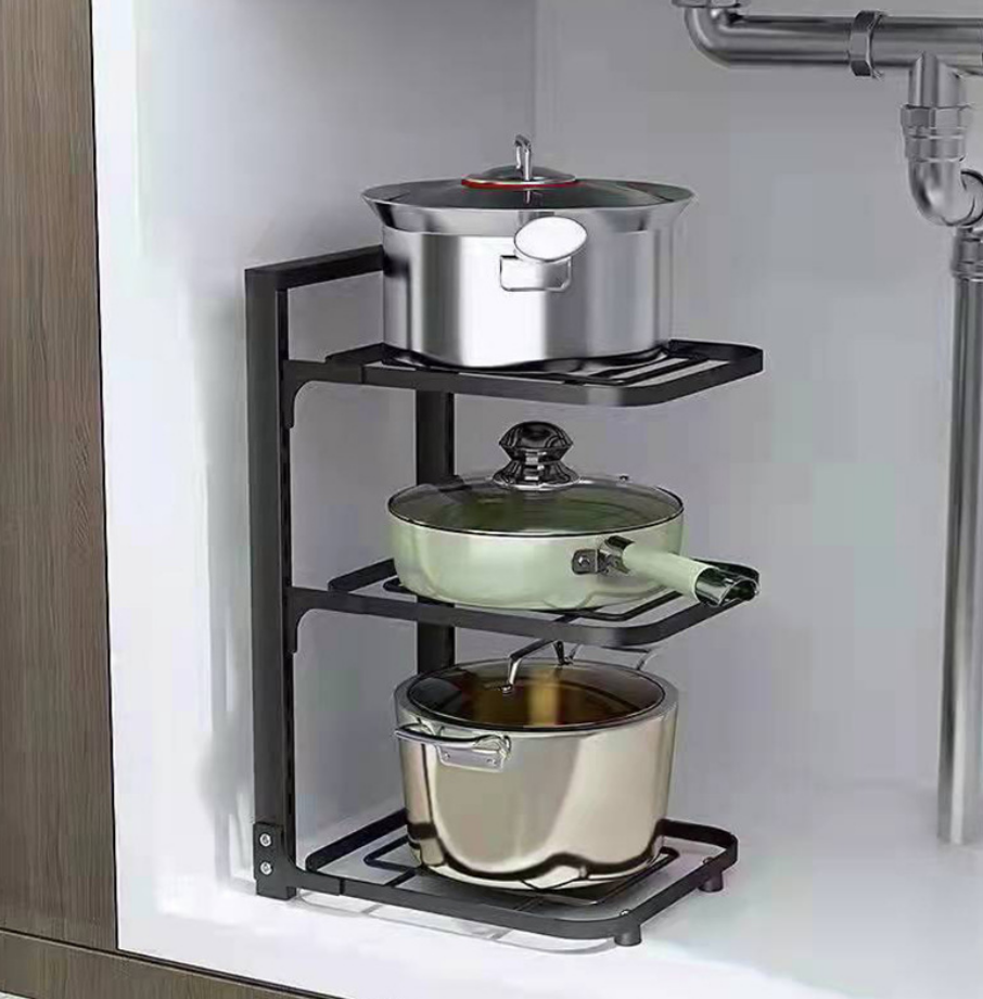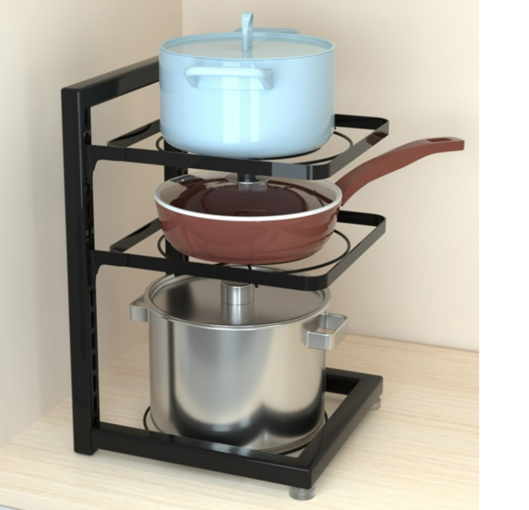 Cu 3 polite reglabile, acest suport de depozitare îți permite să-ți maximizezi spațiul de depozitare fără să mai ocupi prea mult spațiu în casă. Poți să-l folosești în bucătărie pentru a depozita borcanele și condimentele, oale, tigaii si multe altele.
