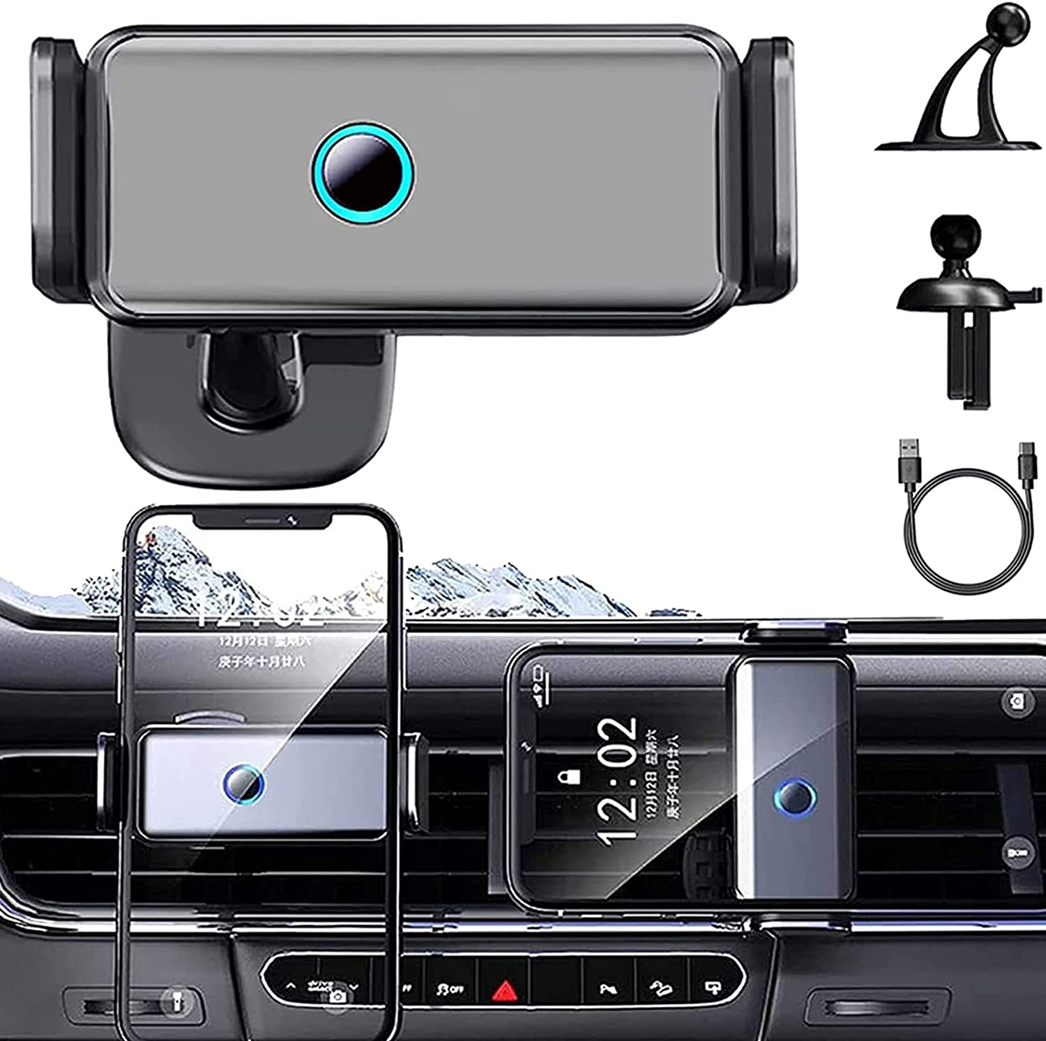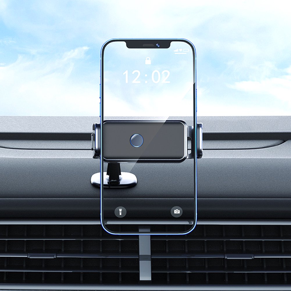 4. Puneți telefonul mobil plat și atingeți butonul din față, iar brațul de prindere al suportului va fi prins automat.