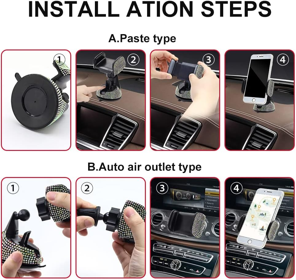 - Suportul pentru telefon bling este realizat din cauciuc ABS de înaltă calitate, plastic și strasuri din cristal. Strasuri strălucitoare de înaltă calitate cu sclipici, perfecte pentru fete/doamne. Este un cadou ideal pentru familie si iubita!