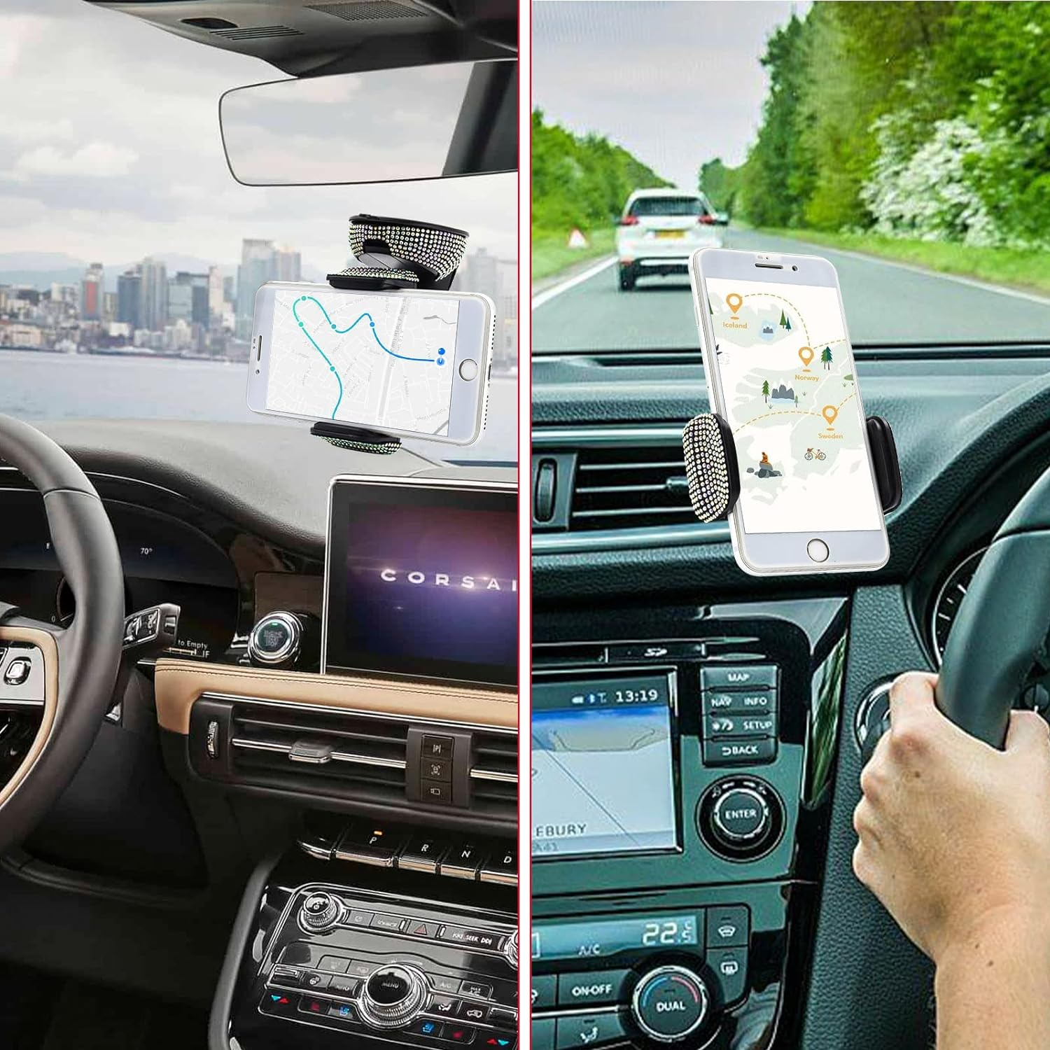 - 3 tipuri de montare: fereastră/planșă de bord/montare cu aerisire. Se potrivește tuturor orificiilor de aer condiționat auto.