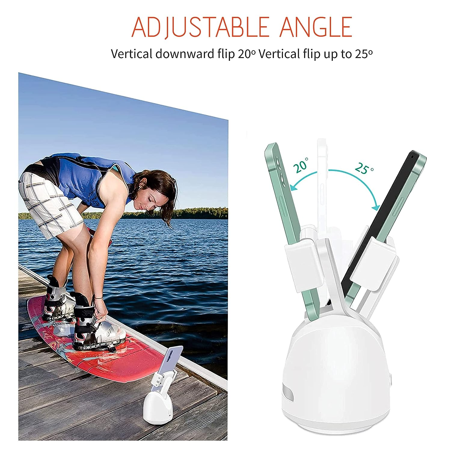 Rotire și reglabil: Suportul pentru telefon cu urmărire a feței se poate roti la 360° orizontal și 45° vertical pentru a vă menține mereu în poziția centrală. Îl poți folosi pentru a-ți înregistra viața și nu-ți face griji cu privire la rotirea manuală a camerei.