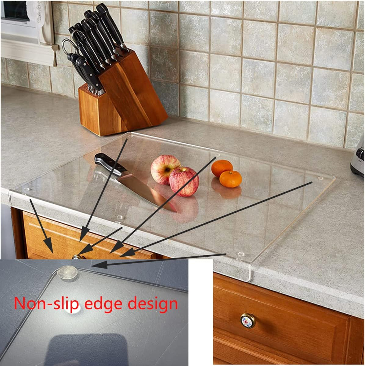 Marginea ușor curbată acționează ca o barieră de protecție, prevenind deteriorarea colțurilor și a muchiilor blatului. Ideal pentru blaturi din granit, marmură sau lemn.