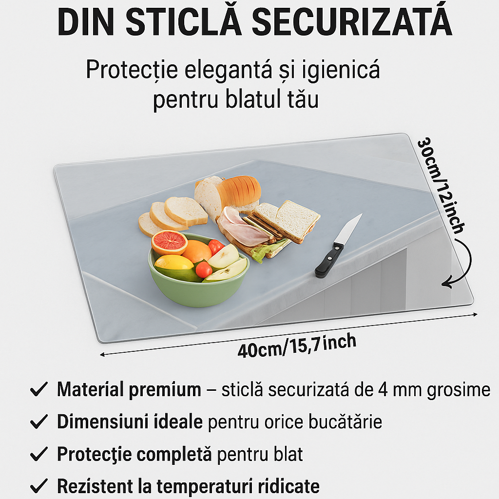 Protejează-ți blatul de bucătărie cu stil și eficiență. Tocătorul din pp securizată este soluția ideală pentru gătit igienic, tăiere precisă și protejarea suprafețelor împotriva zgârieturilor, petelor sau temperaturilor ridicate.