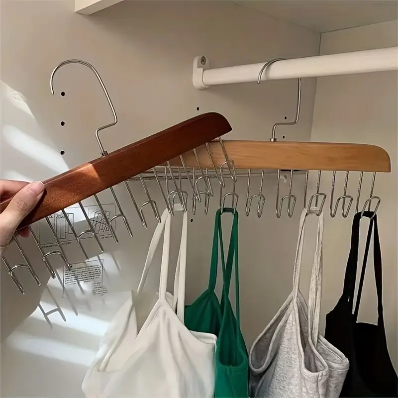 - Umerașe din lemn: Organizatorul de centură cu cârlig pivotant la 360 de grade vă permite să întoarceți cu ușurință cuierul în lateral pentru a selecta articole. Ideal pentru agățat curele, cravate, poșete, eșarfe, coliere și alte accesorii de bijuterii.