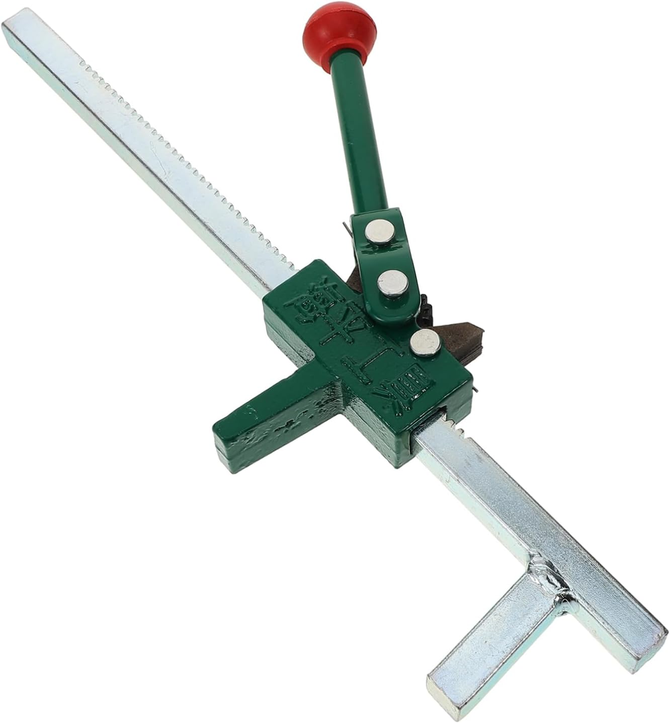 Talpă lată anti-alunecare și mâner cu buton din cauciuc roșu, vizibil chiar și în ateliere aglomerate.