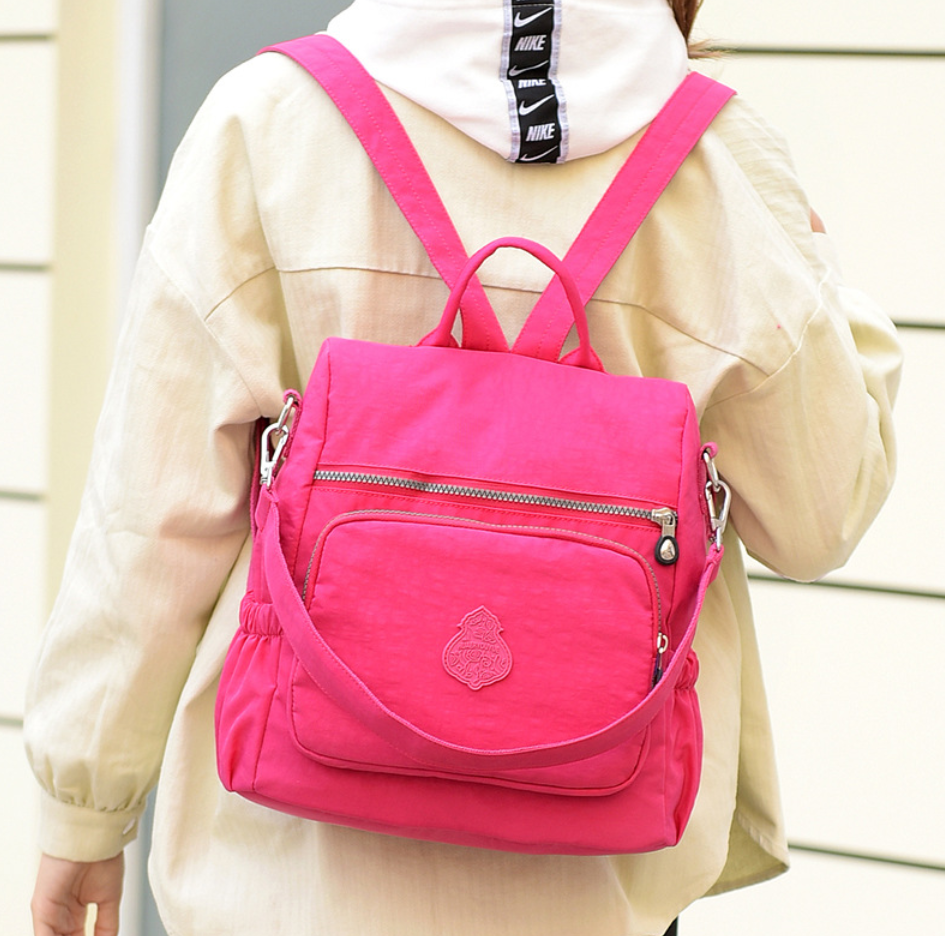Rucsacul pentru femei este confecționat din material textil din nylon durabil, fiind bine realizat, rezistent la rupturi și zgârieturi. Testat într-o țară cu o umiditate de aproximativ 86%, în Asia, a fost expus frecvent la ploaie și nu a permis niciodată pătrunderea umezelii în interiorul genții. Astfel, buzunarul lateral protejează obiectele împotriva umezelii în condiții de mediu umed.